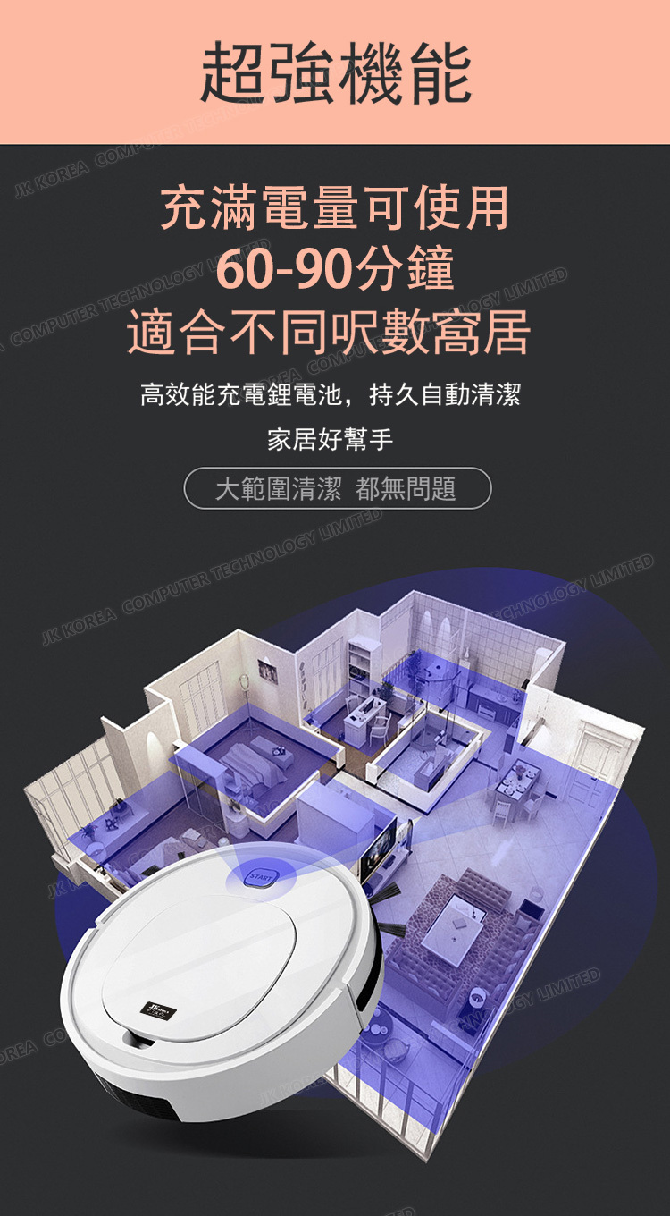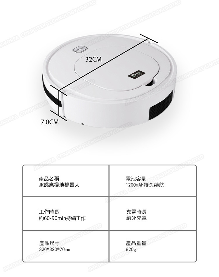 韓國JK 自動感應掃地機器人懶人清潔家用掃拖吸塵器