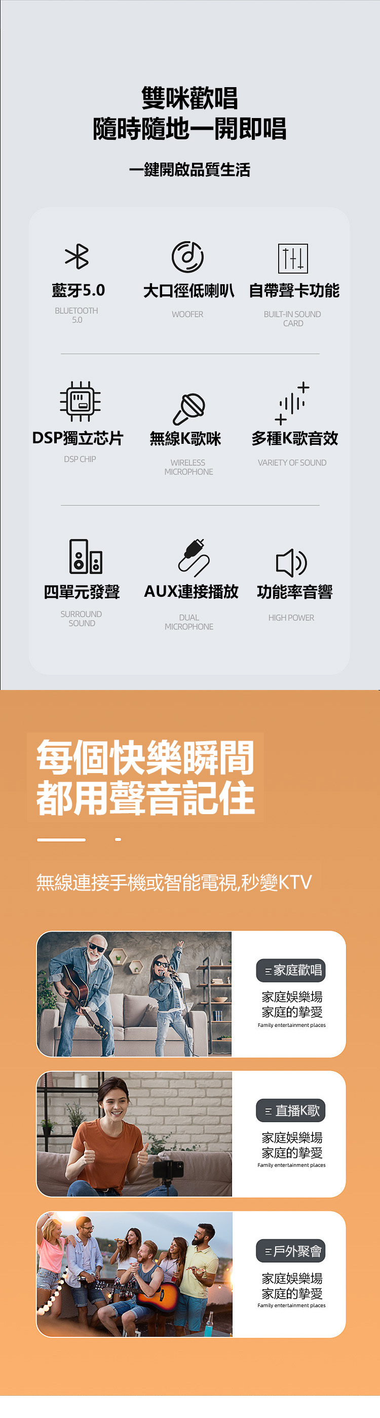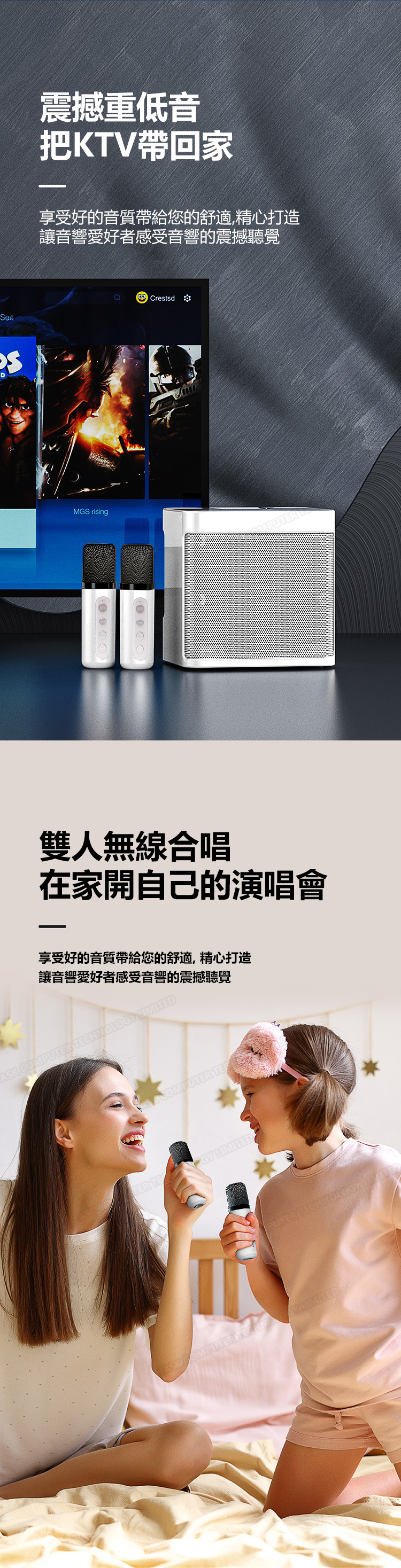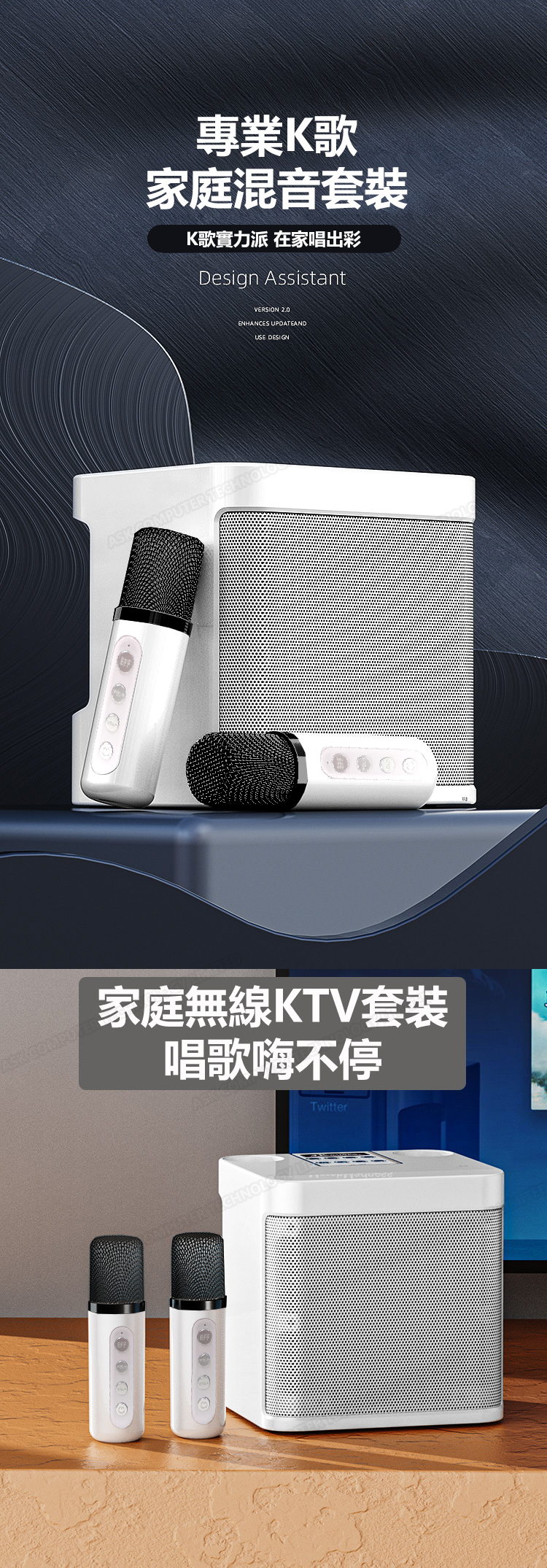 韓國JK 家庭無線藍牙雙麥克風卡拉OK音響喇叭 手機電視K歌套裝