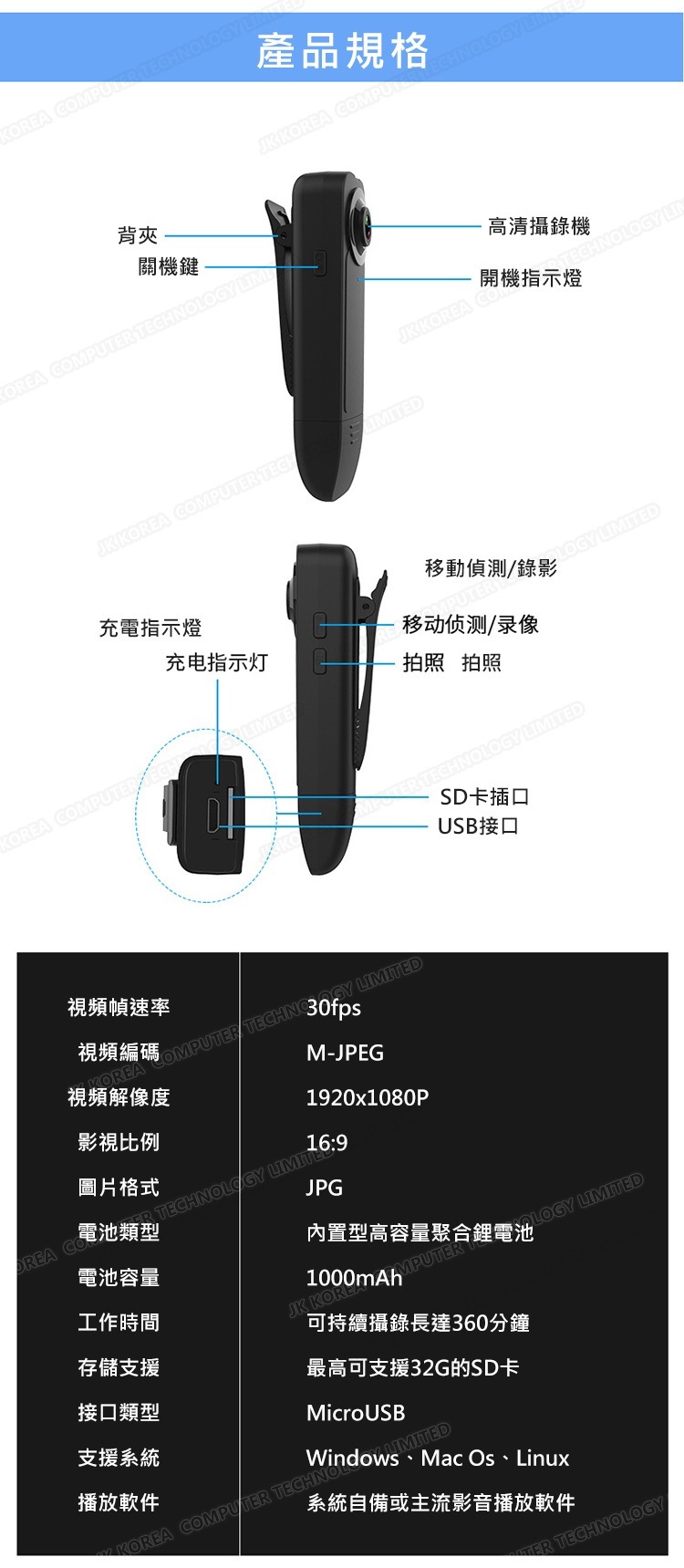 韓國JK 高清1080p手持便攜背夾記錄儀會議usb攝像機錄音錄像筆
