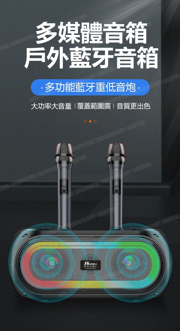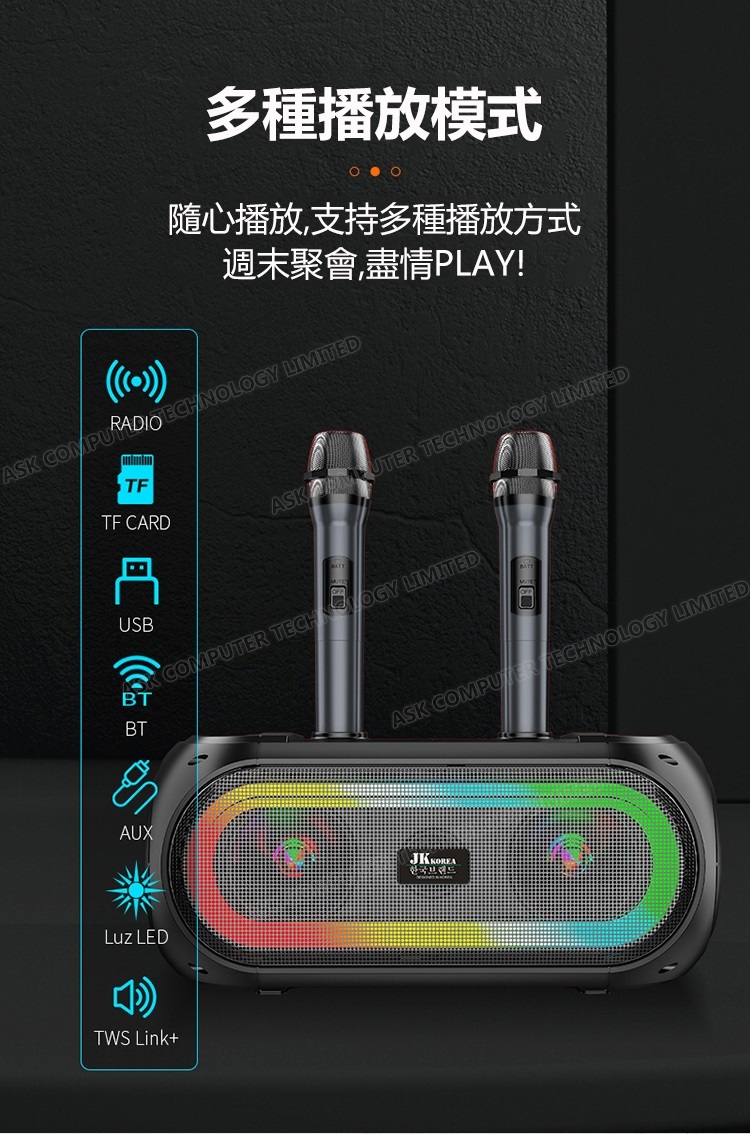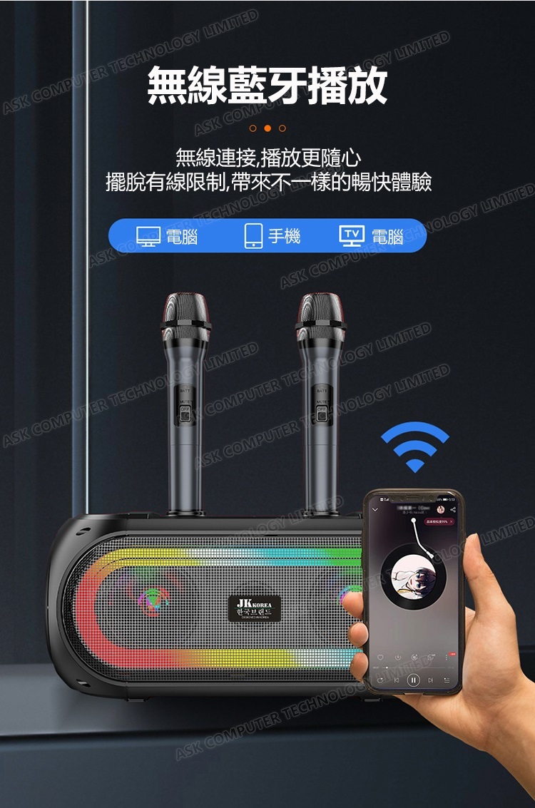 韓國JK 家用K歌無線麥藍牙音響喇叭 家庭KTV電視電腦K歌一拖二藍牙音箱 (J0743)