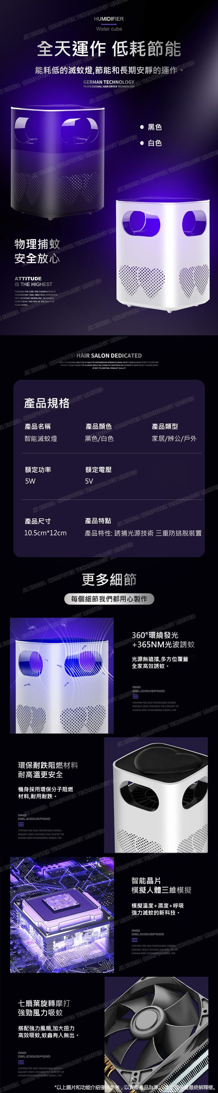 韓國JK 智能光控usb滅蚊燈節能吸入式滅蚊器物理安全驅蚊燈