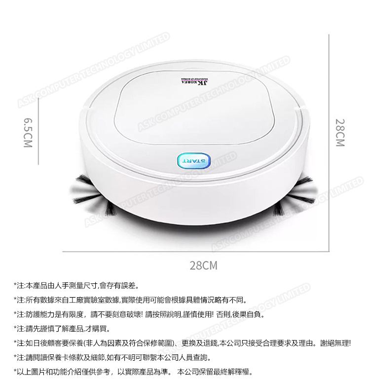 韓國JK 智能掃地機械人懶人家用清掃吸塵機械人