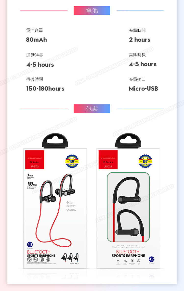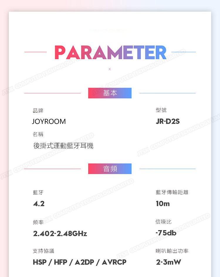 韓國JK JOYROOM JR-D2S 掛脖式運動藍牙耳機