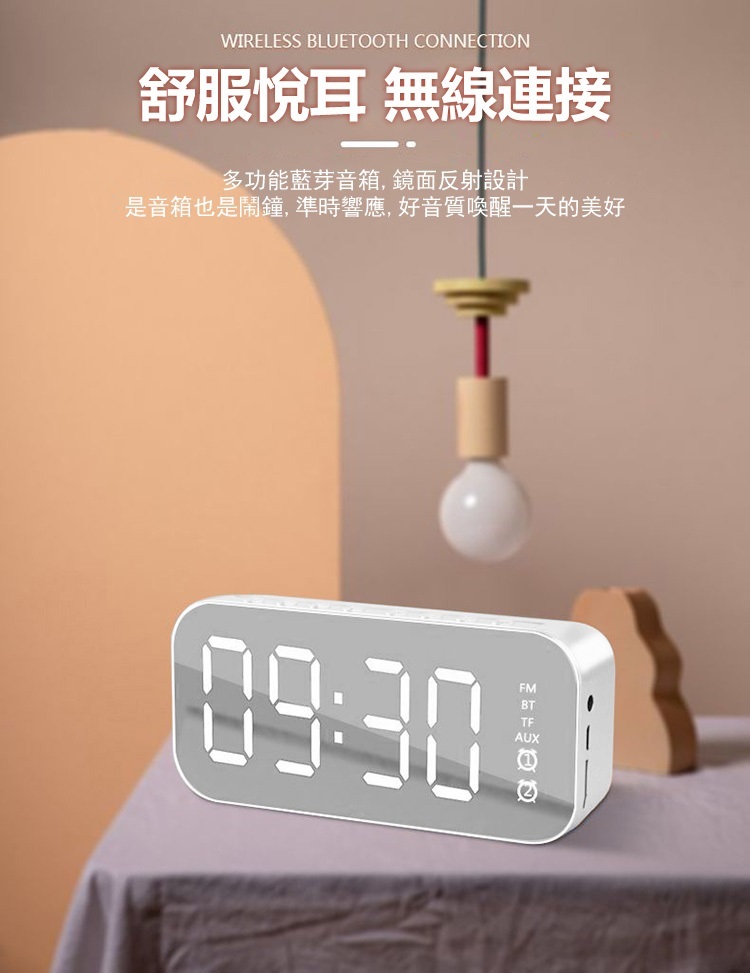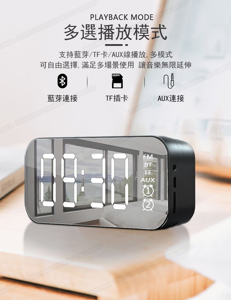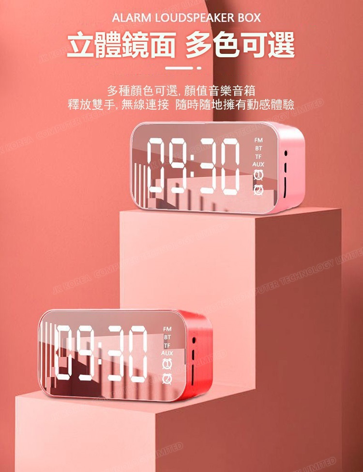 韓國JK 新款鬧鐘藍牙音響無線收音機插卡迷你小鋼砲音箱鏡面手機音箱