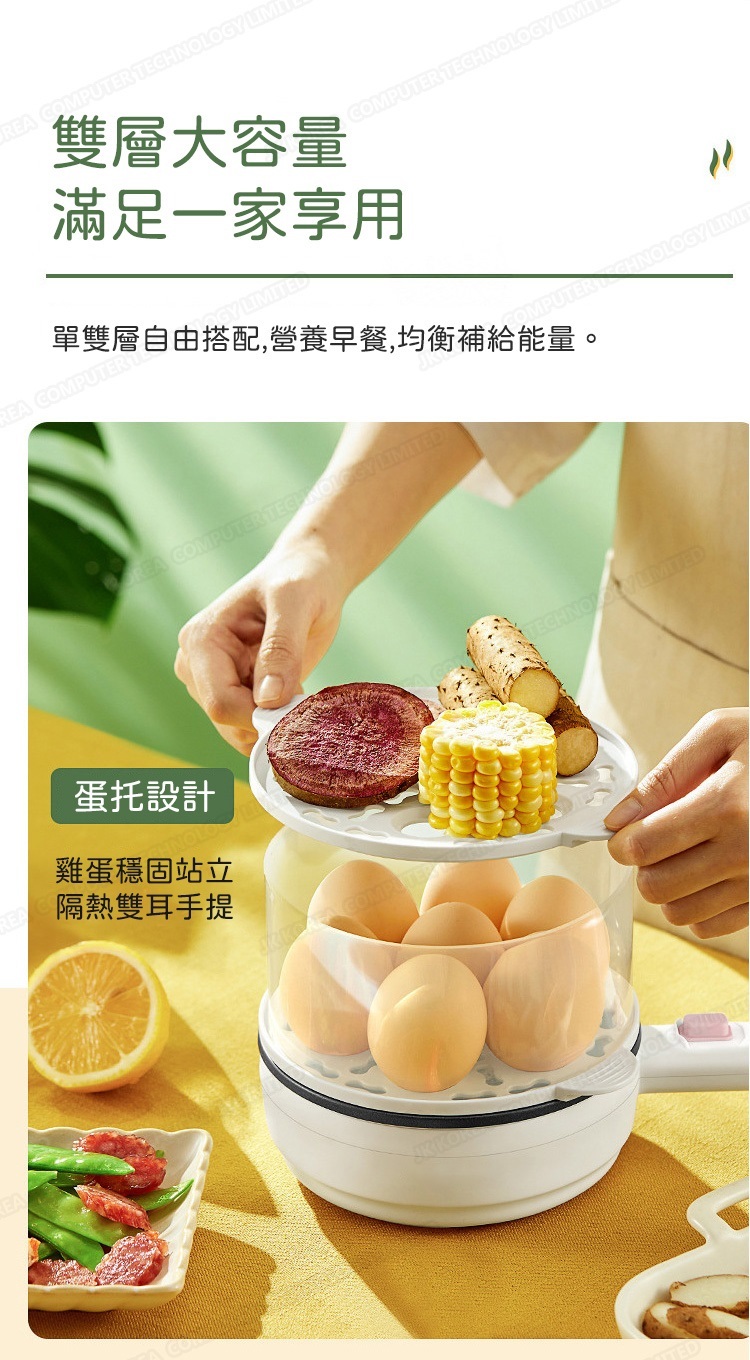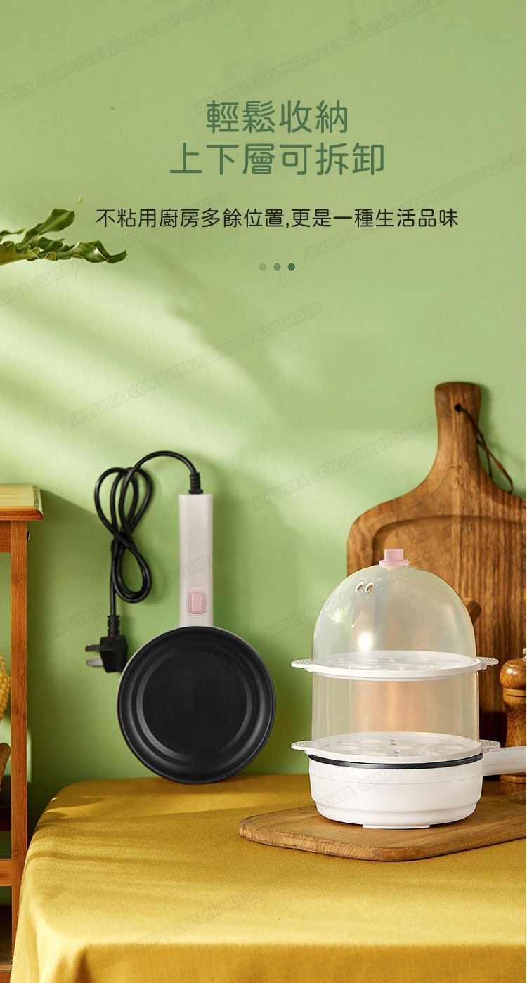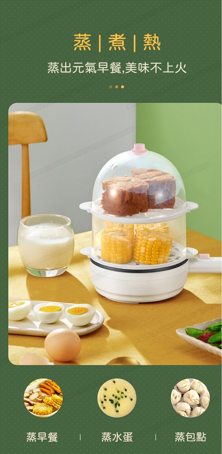 韓國JK 新款早餐機煎蛋器小型煮蛋蒸蛋器全自動斷電家用雞蛋迷你鍋(雙層)