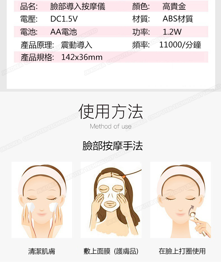 韓國JK 新款電動按摩嫩膚臉部按摩美容儀器面部電子美容精華導入儀