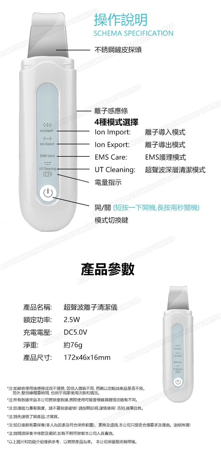 韓國JK 新款EMS微電超聲波黑頭鏟皮機美容儀導入導出去潔面毛孔清潔電動美容儀器