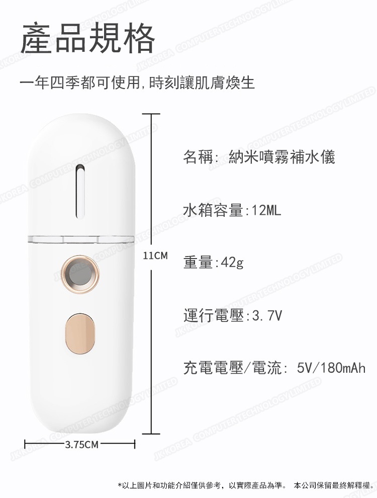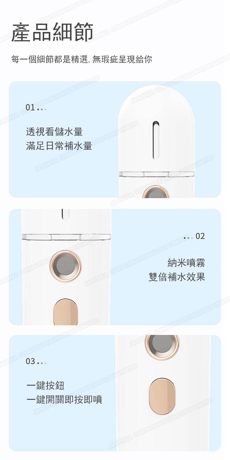 韓國JK 新款臉部納米補水儀USB充電大噴霧蒸臉儀 便攜補水儀加濕器