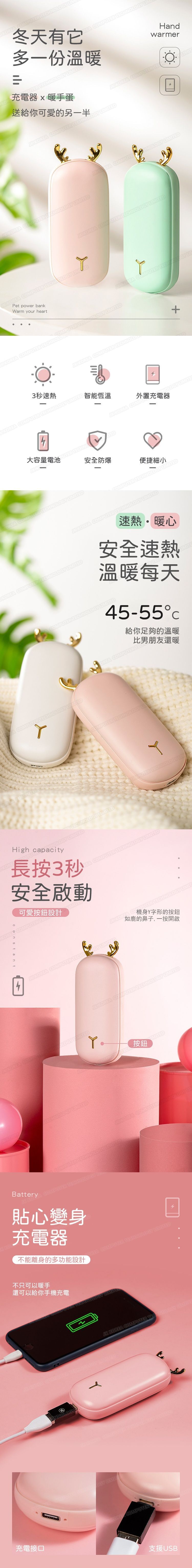 韓國JK 新款暖手寶充電寶 隨身迷你暖寶寶電發熱二合一兩用USB移動電源
