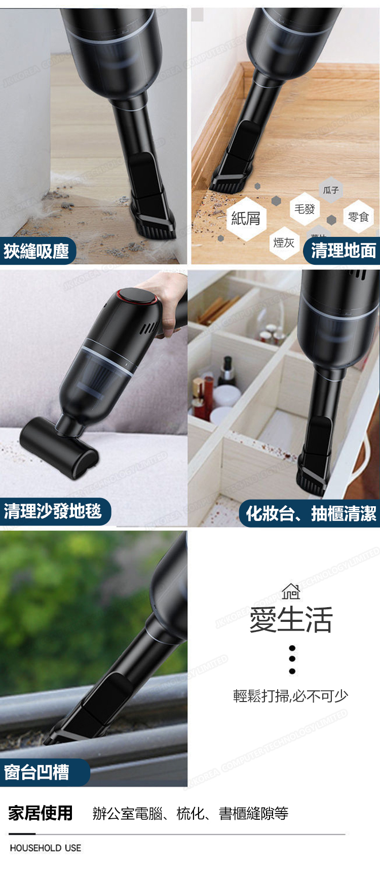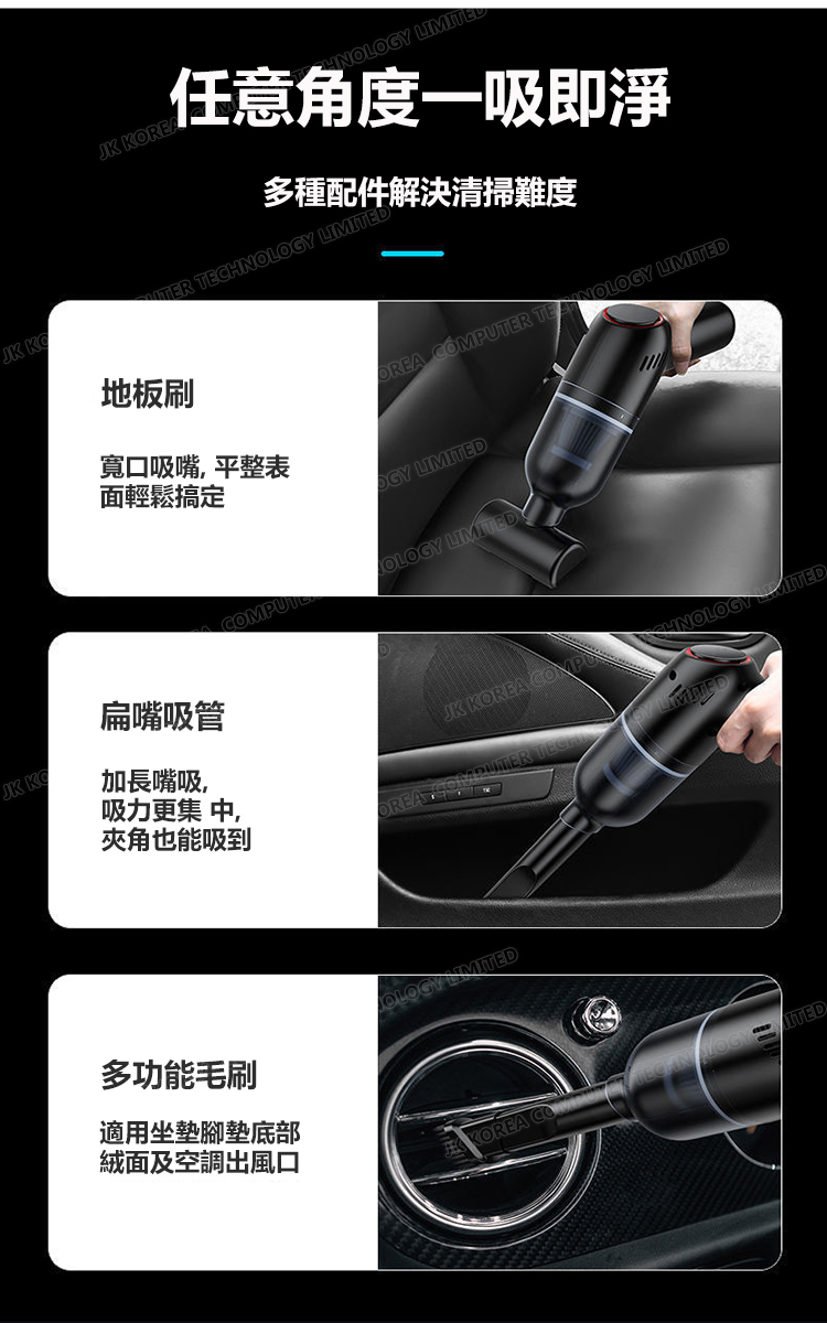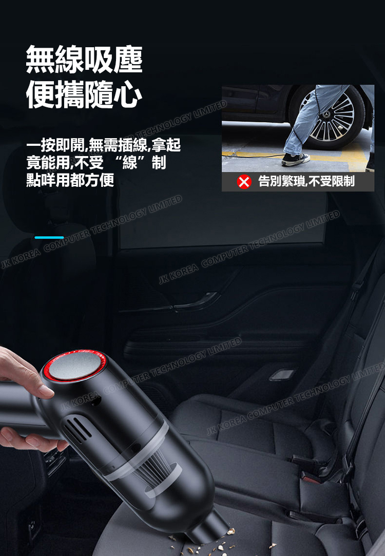 韓國JK 新款大功率車載吸塵器無線款家用車用室內床上大吸力強力小型吸塵器