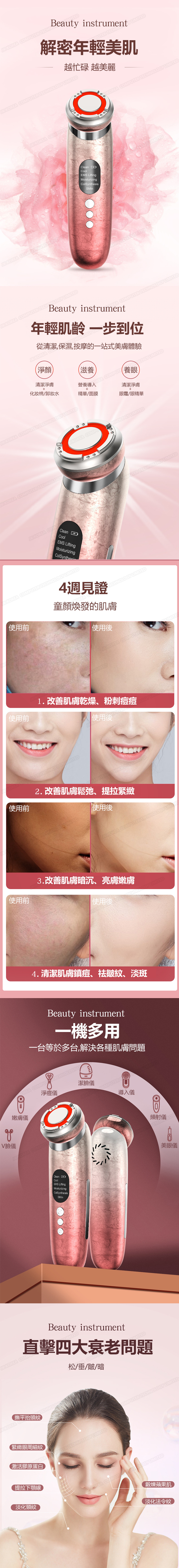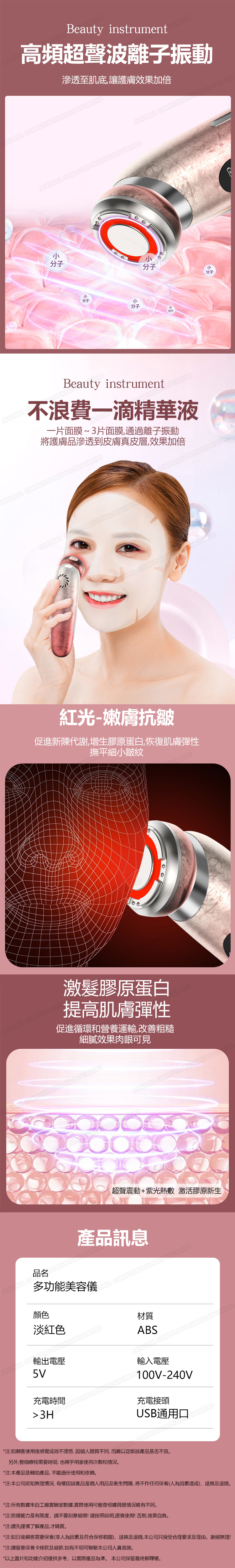 韓國JK 新款家用彩光溫熱嫩膚導入儀EMS微電超聲波臉部震動射頻美容儀器嫩膚臉部提拉緊緻振動按摩儀