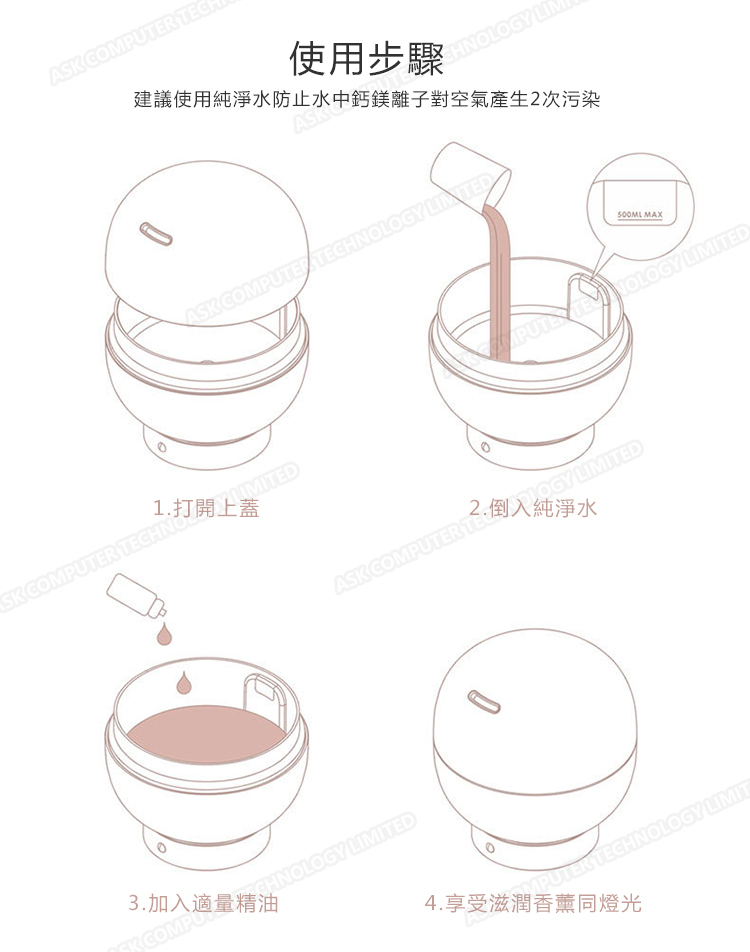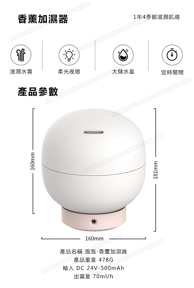 韓國JK 新款加濕器家用夜燈精油香薰泡泡超聲波加濕器 (J0192)