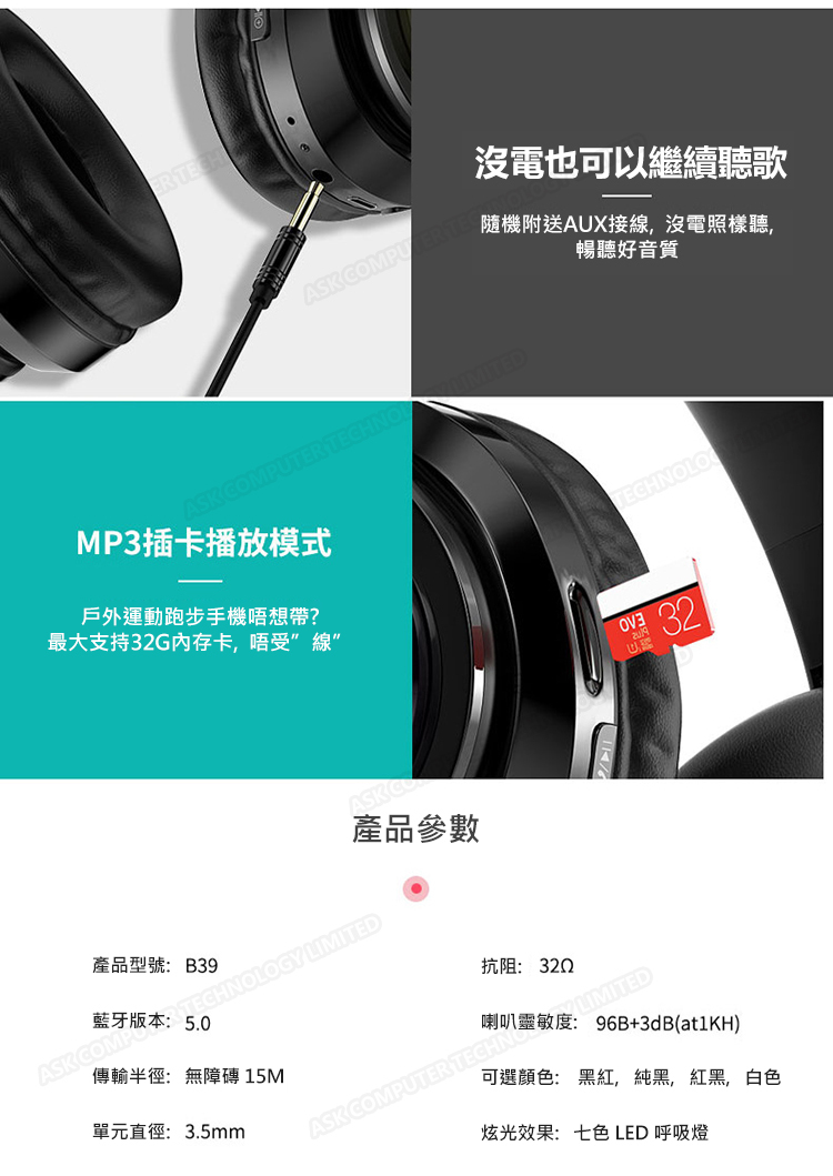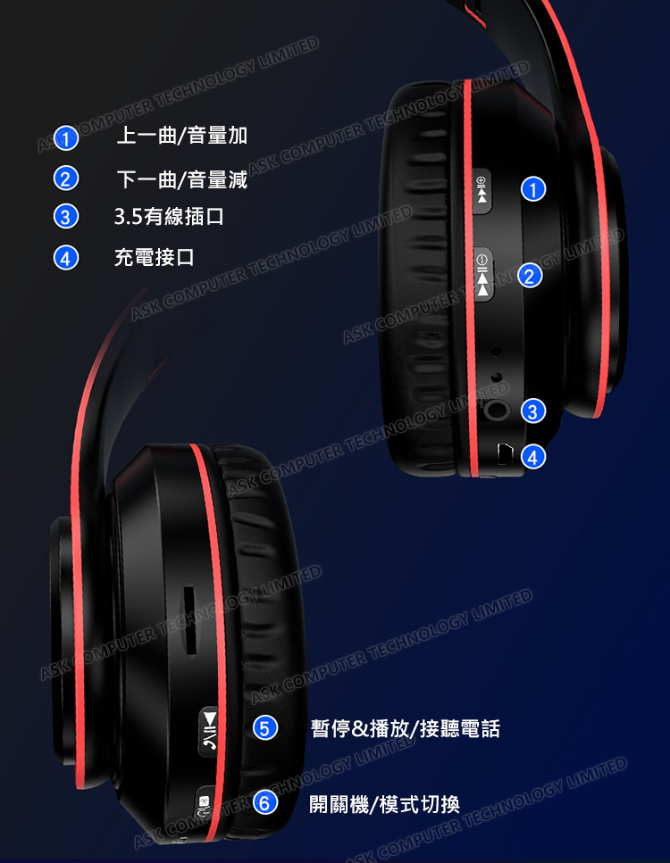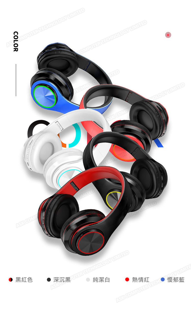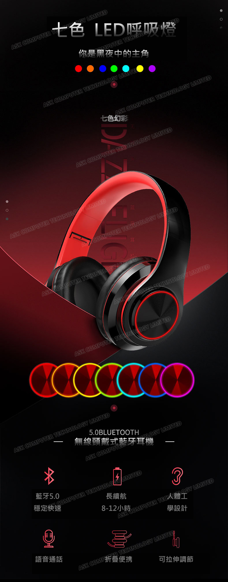 韓國JK 新款發光藍牙耳機頭戴式重低音手機無線插卡耳機