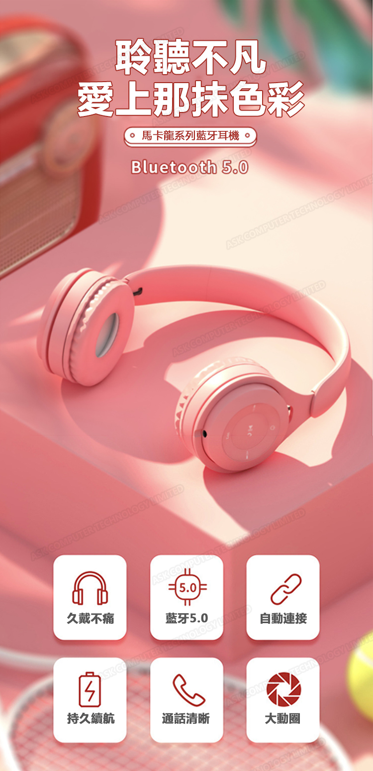 韓國JK 新款馬卡龍頭戴式藍牙耳機