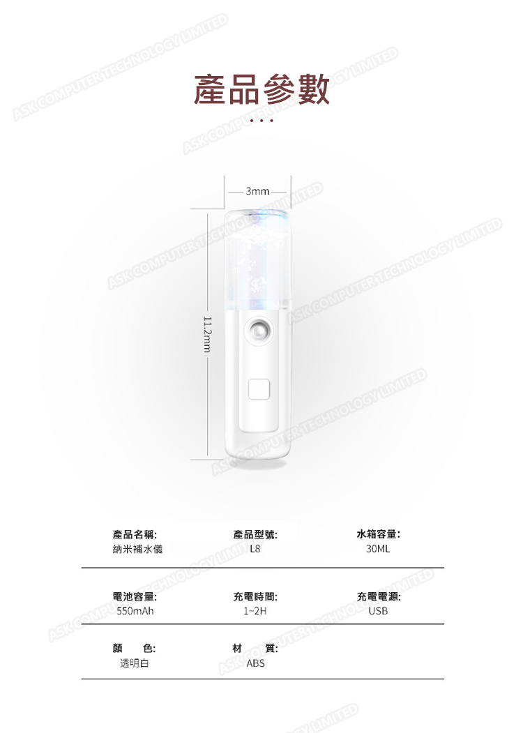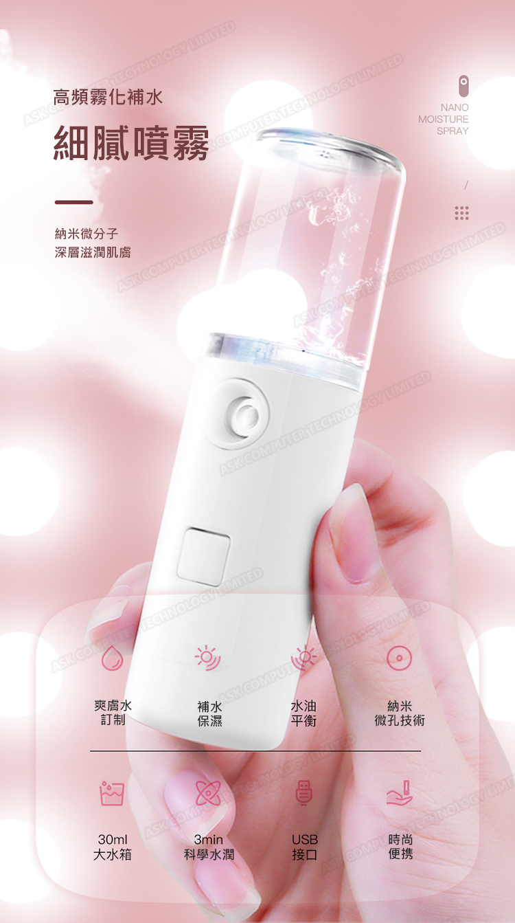 韓國JK 新款MINI納米噴霧補水儀便攜式充電式面部加濕器