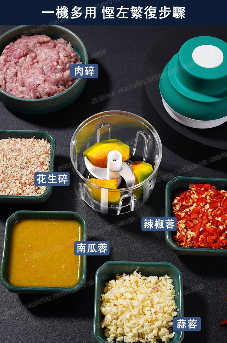 韓國JK 新款多功能切菜器打蒜器迷你電動搗蒜器蒜泥攪碎機(250ml)