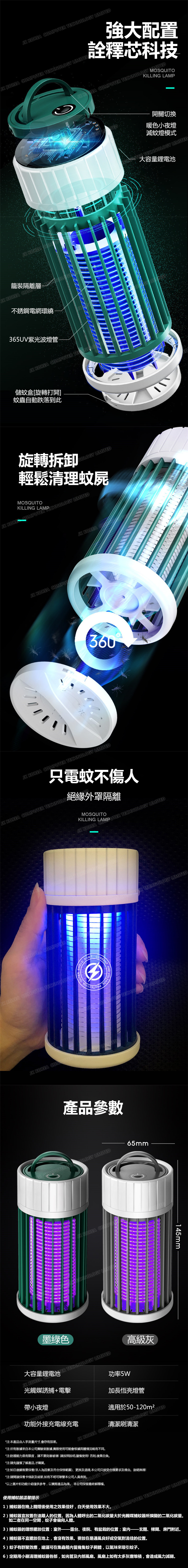 韓國JK 新款多功能智能電擊式滅蚊燈戶外家用光觸媒滅蚊器二合一電蚊器(充插兩用) J0777
