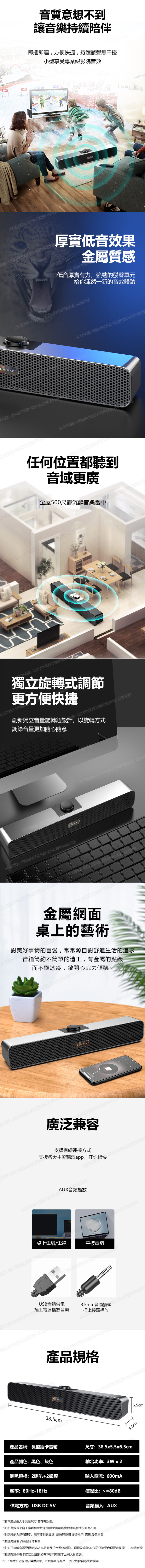 韓國JK 新款多功能長條音箱 USB電腦音響