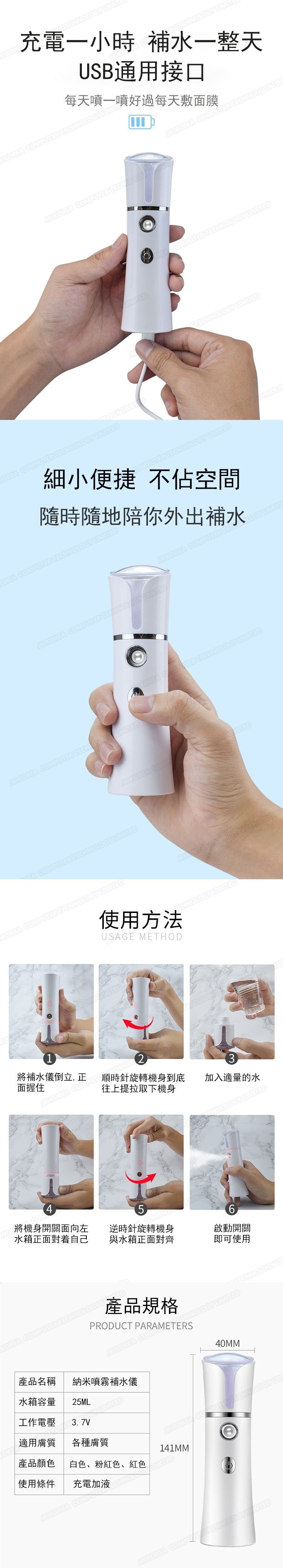 韓國JK 新款小瓶子款納米噴霧補水儀噴霧器蒸臉冷噴充電便攜式美容儀器加濕器