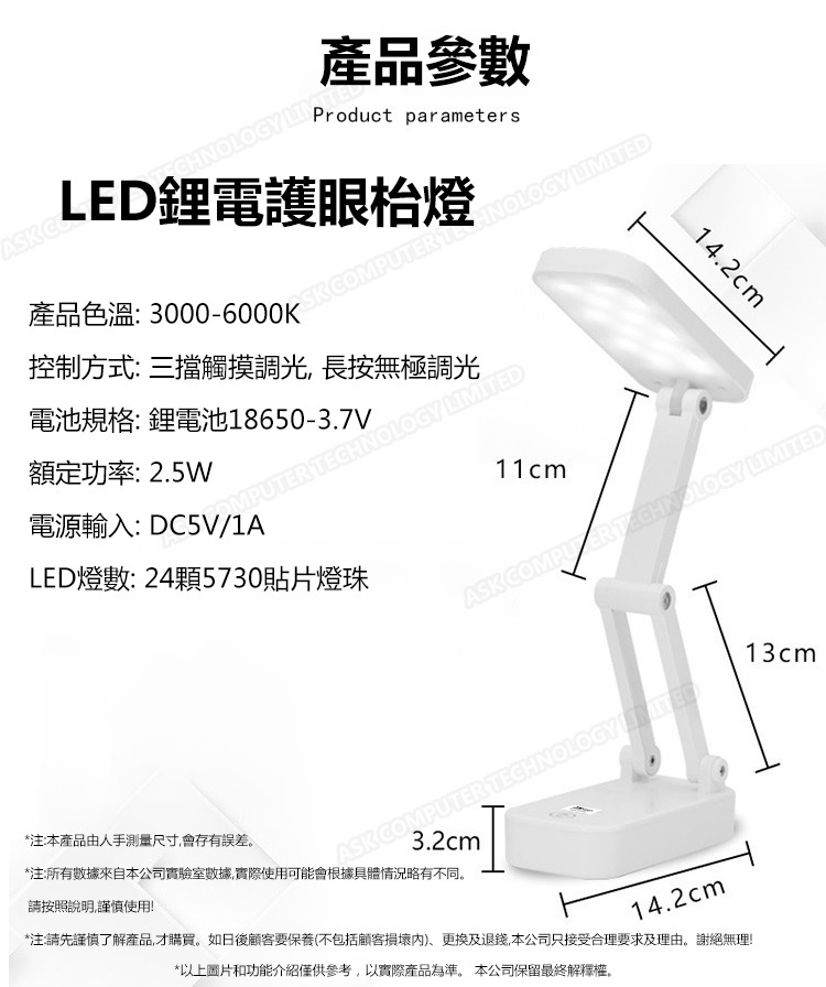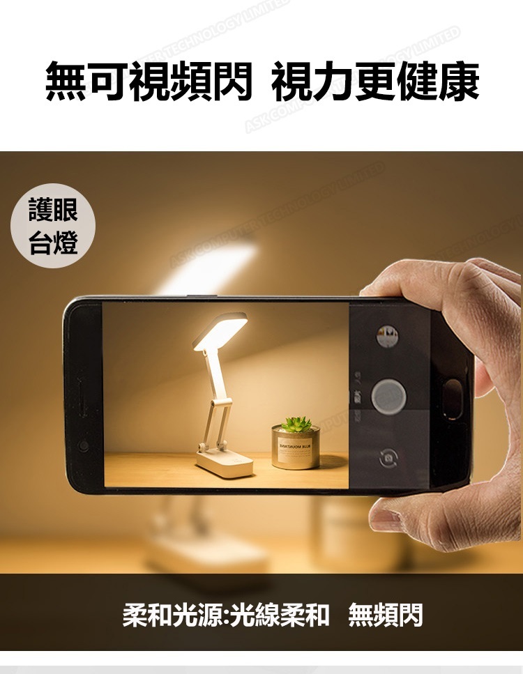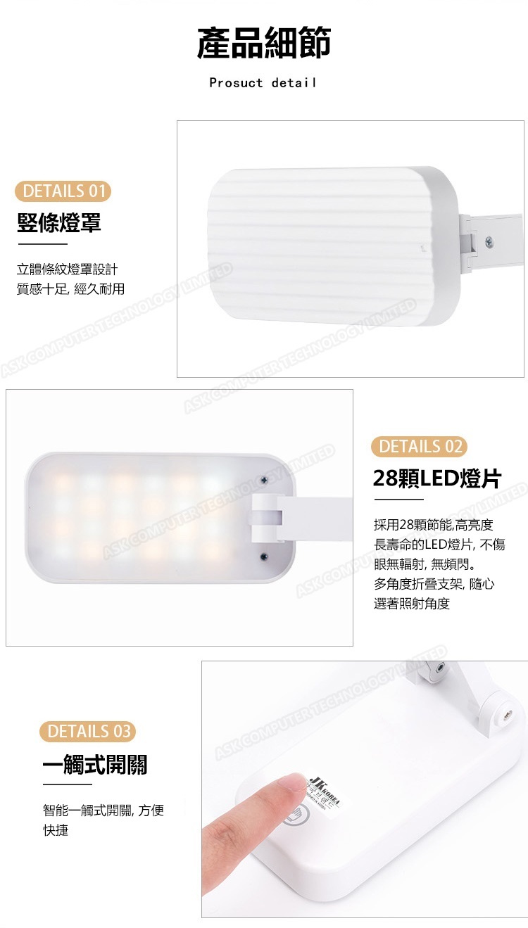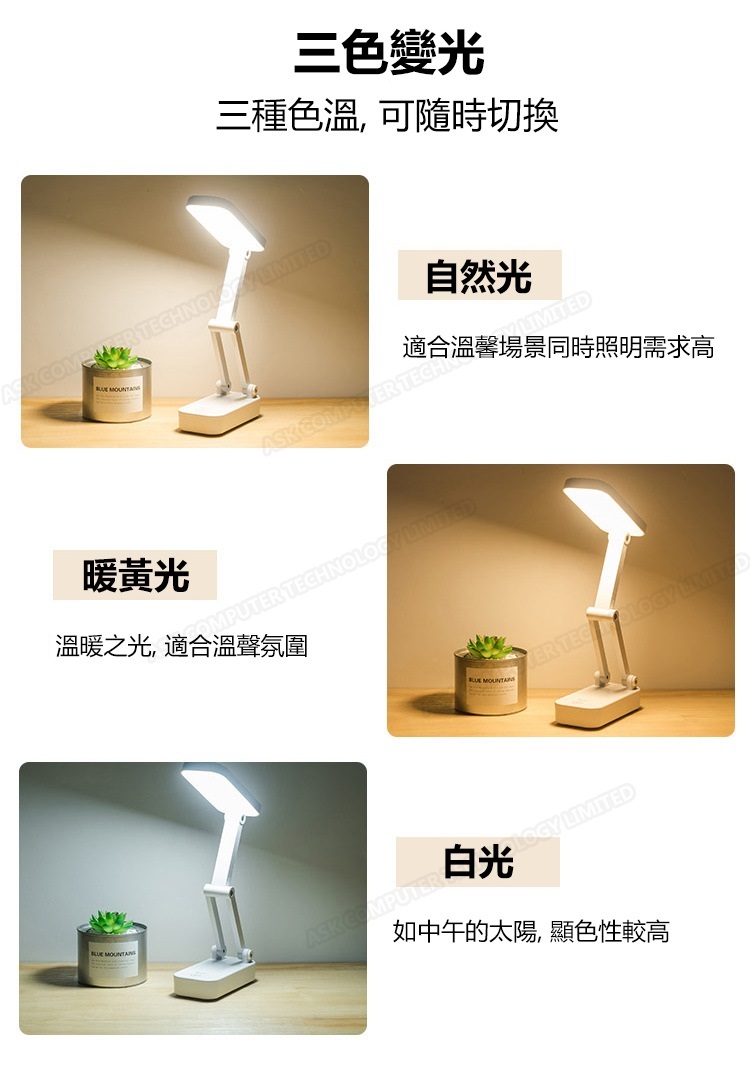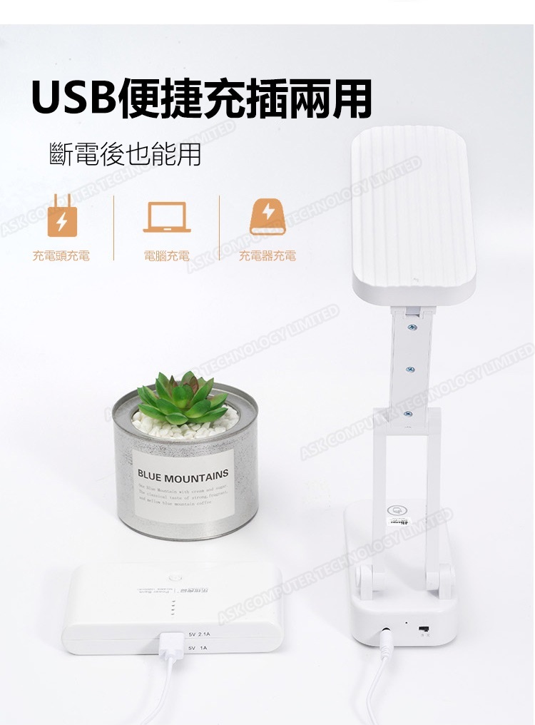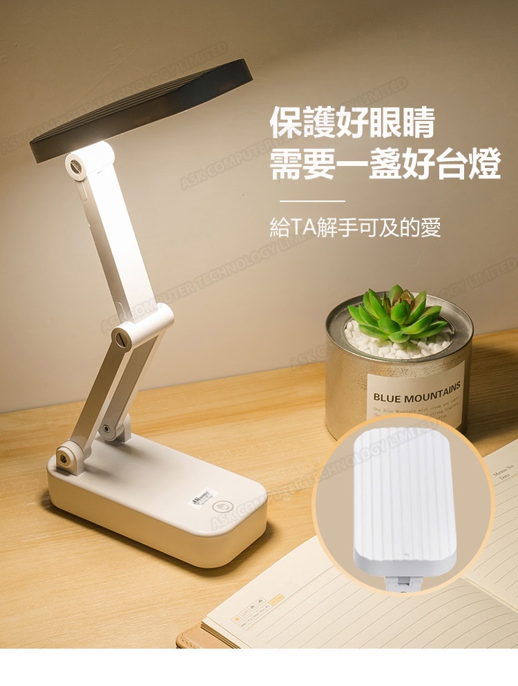 韓國JK 新款智能護眼檯燈迷你LED酷斃燈床頭閱讀燈折疊USB充電小檯燈(充插兩用)