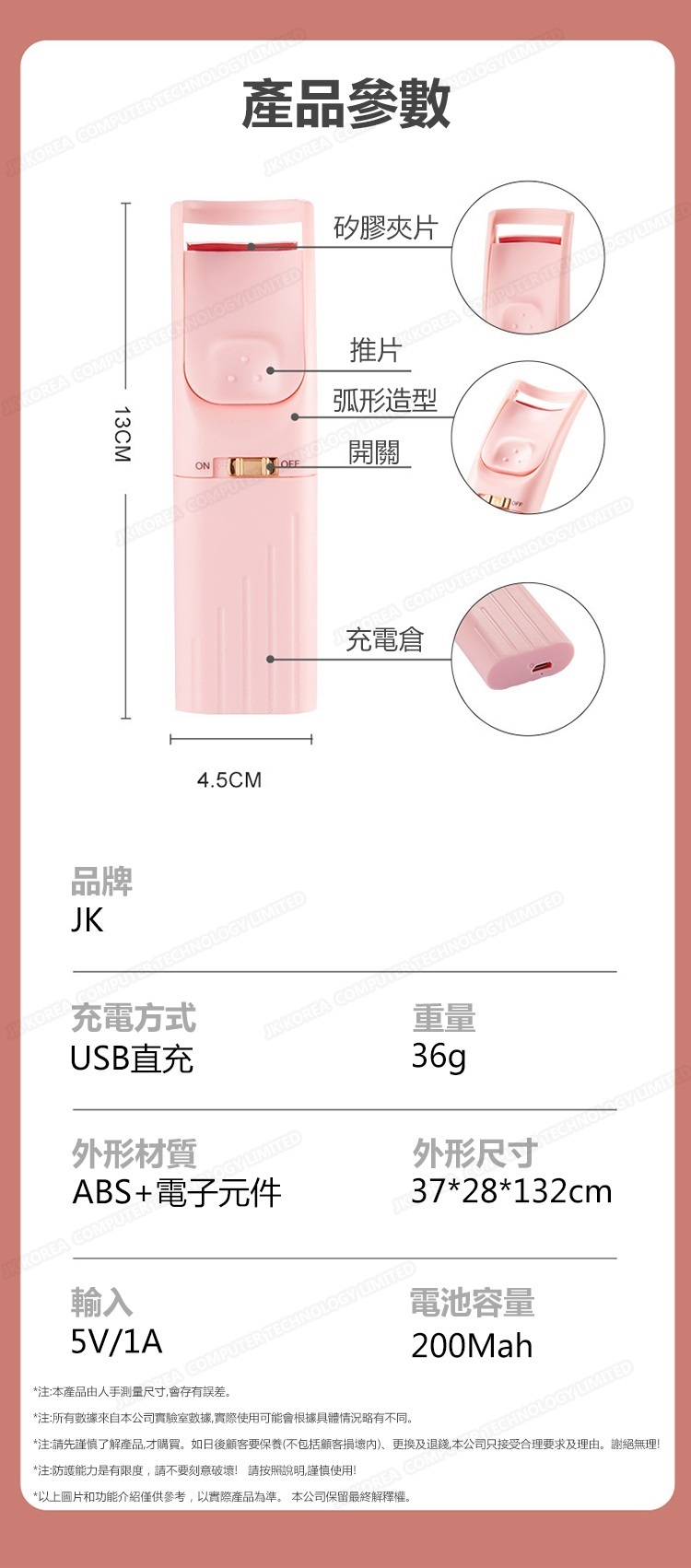 韓國JK 新款USB充電款加熱電燙睫毛器電動睫毛捲翹器迷你睫毛夾加熱睫毛卷燙器