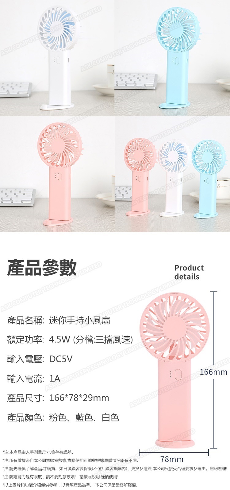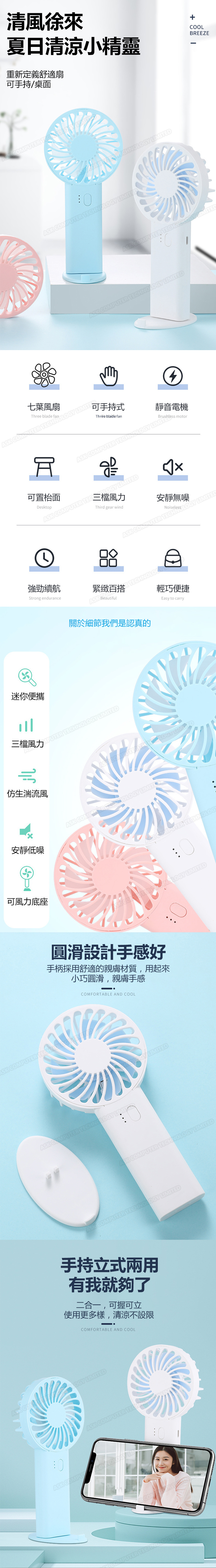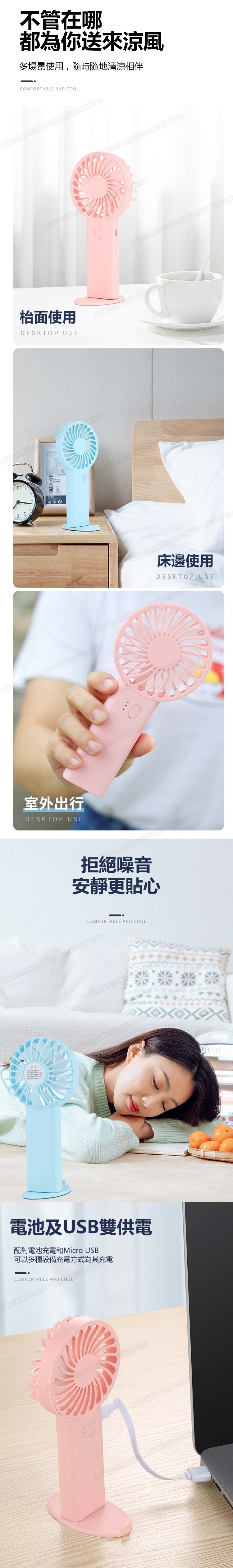 韓國JK 新款USB手持台式七葉風扇 迷你便攜式充電學生宿舍桌面電風扇