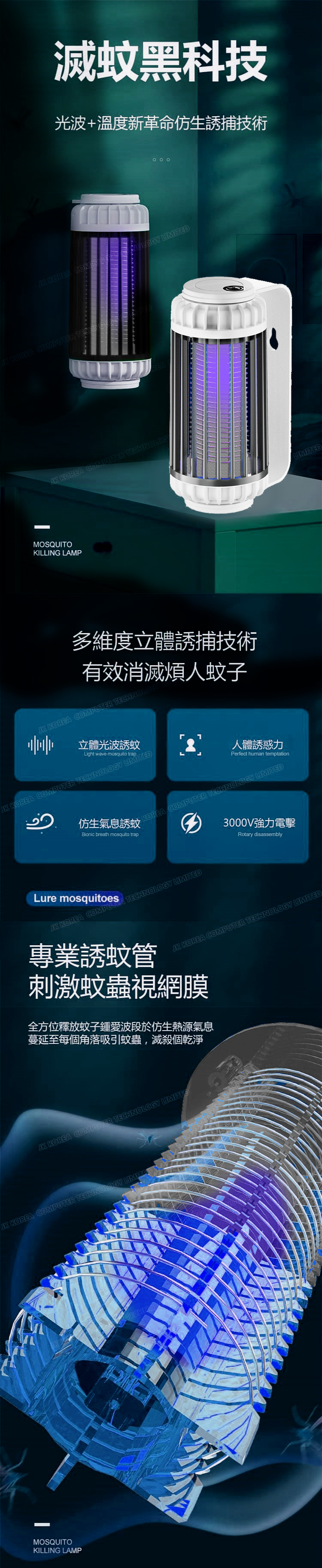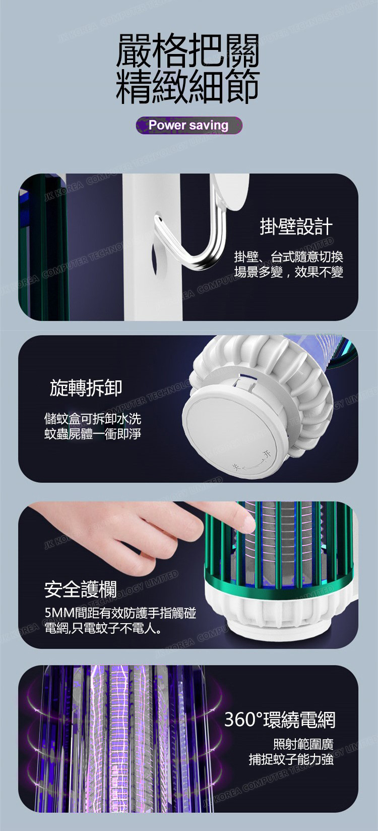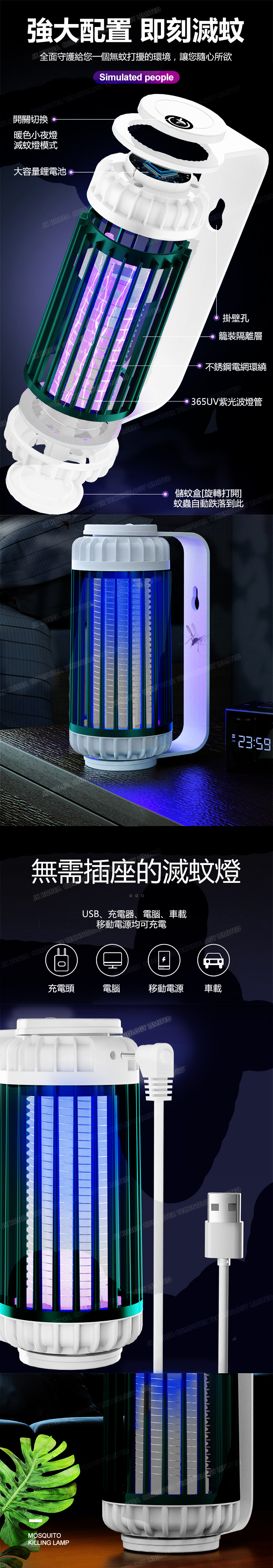 韓國JK 新款USB充電可吊掛光誘吸入式電擊滅蚊燈家用戶外電擊捕蚊燈滅蚊器