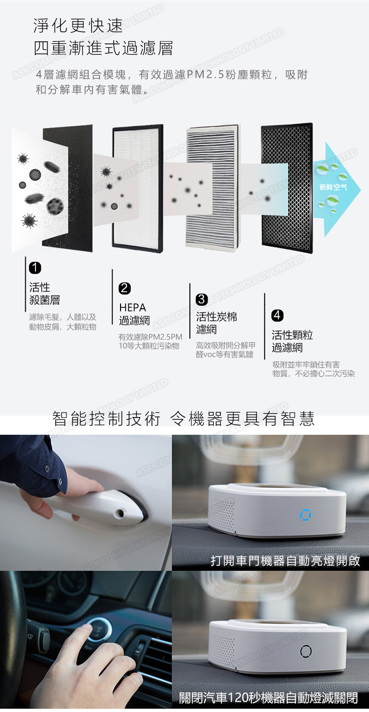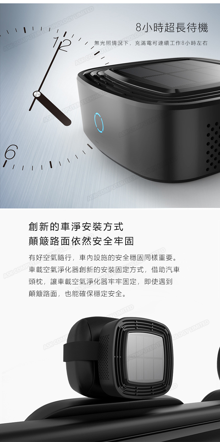 韓國JK 太陽能車載空氣淨化器除甲醛異味霧霾