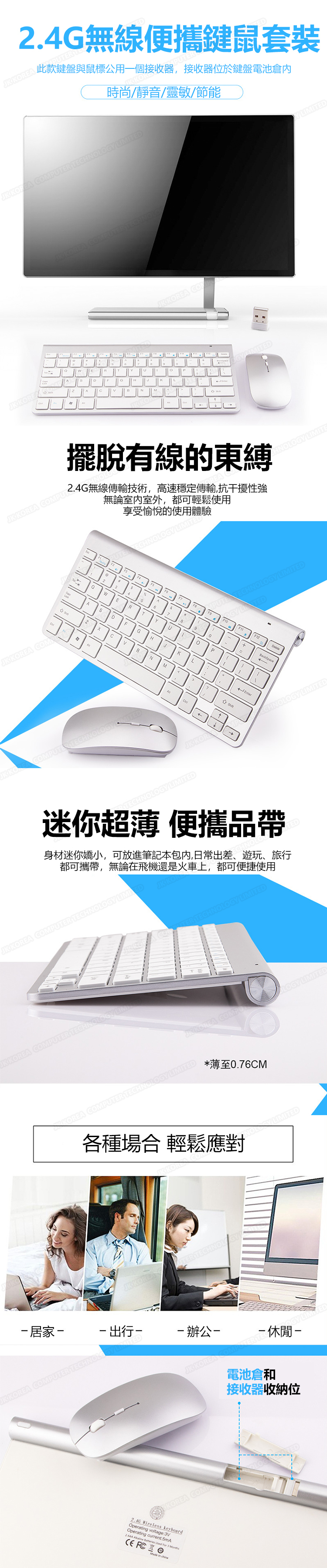 韓國JK 超薄2.4G商務辦公無線便攜鍵盤鼠標套裝