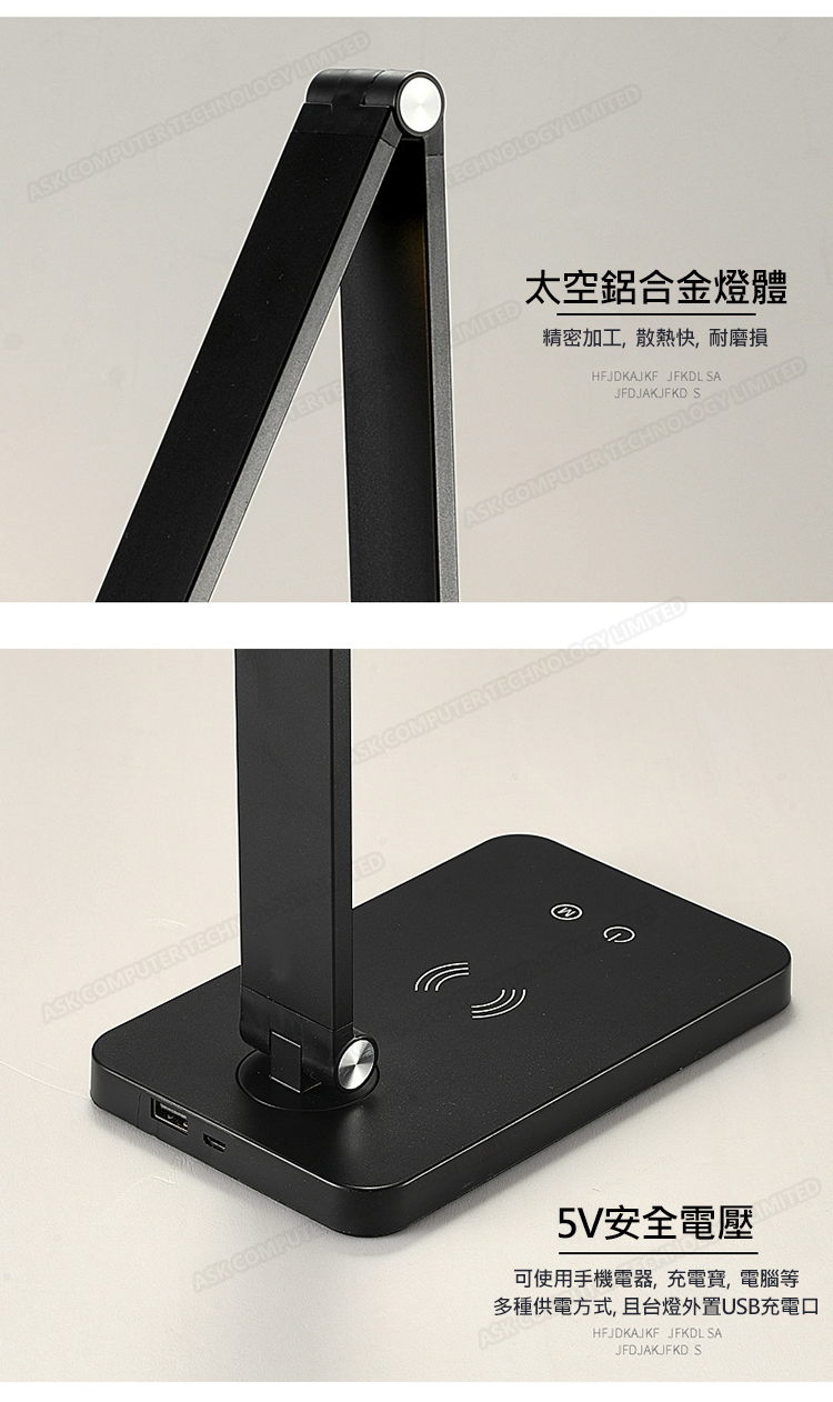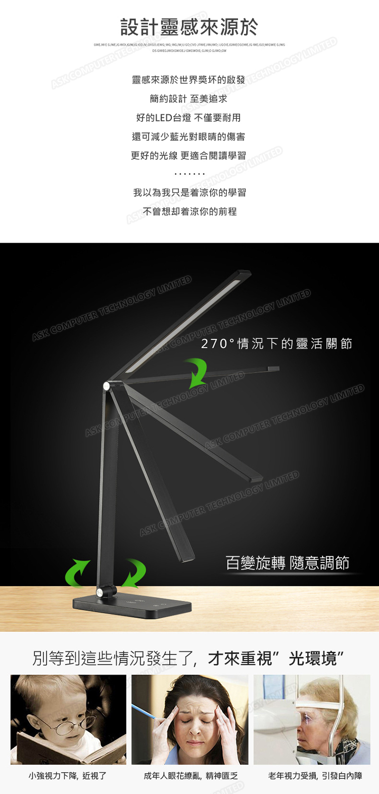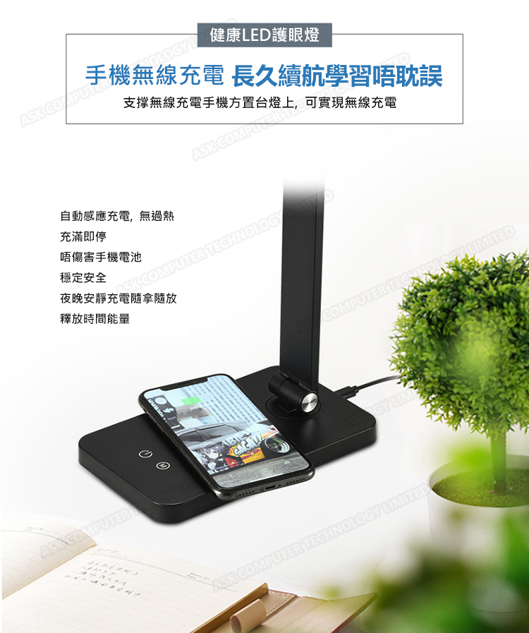 韓國JK 無線充電護眼檯燈LED調光調色usb檯燈