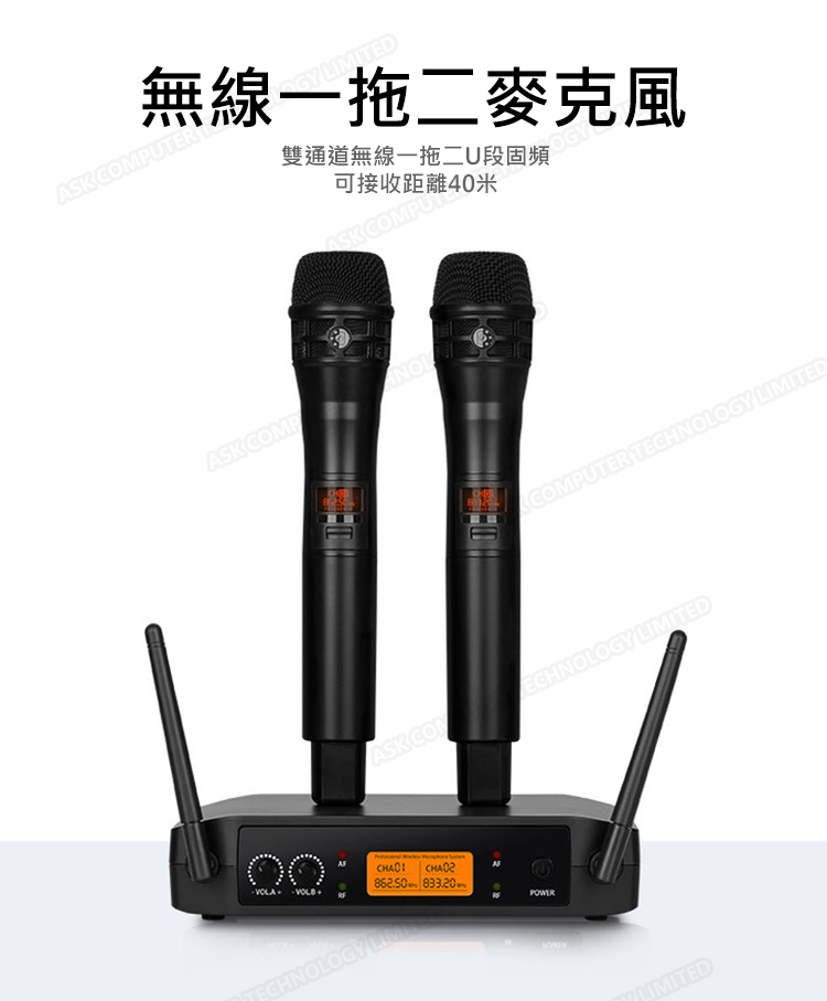 韓國JK 升級版無線麥克風一拖二U段話筒家用K歌話筒KTV唱歌卡拉OK (J0390)
