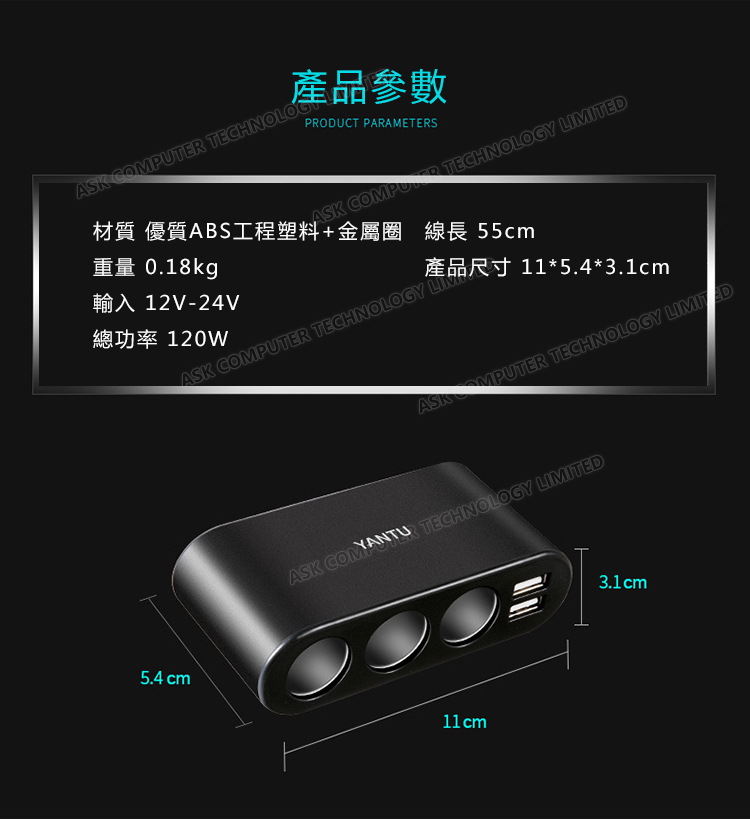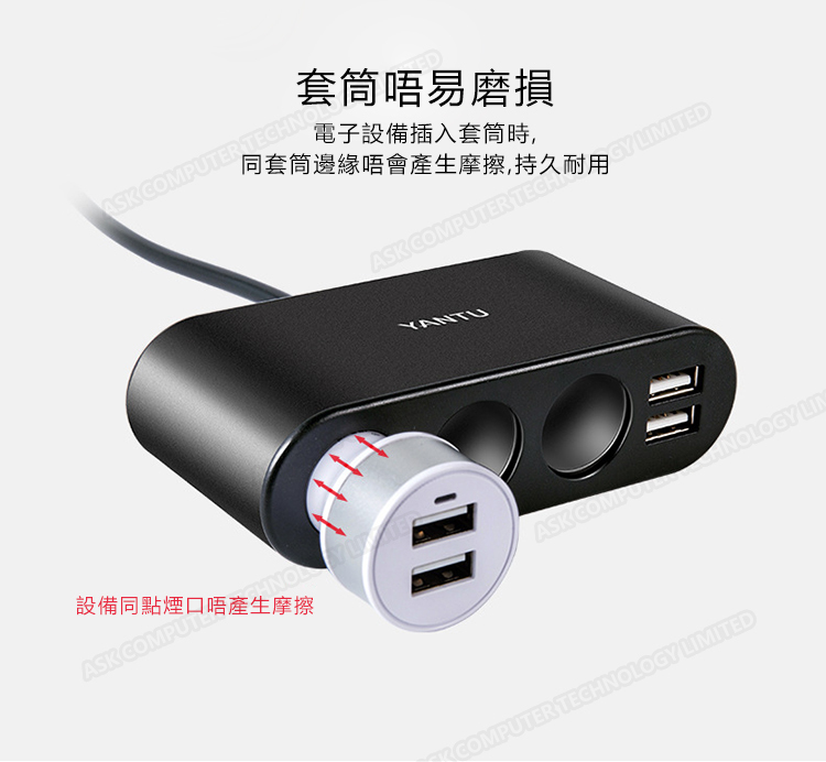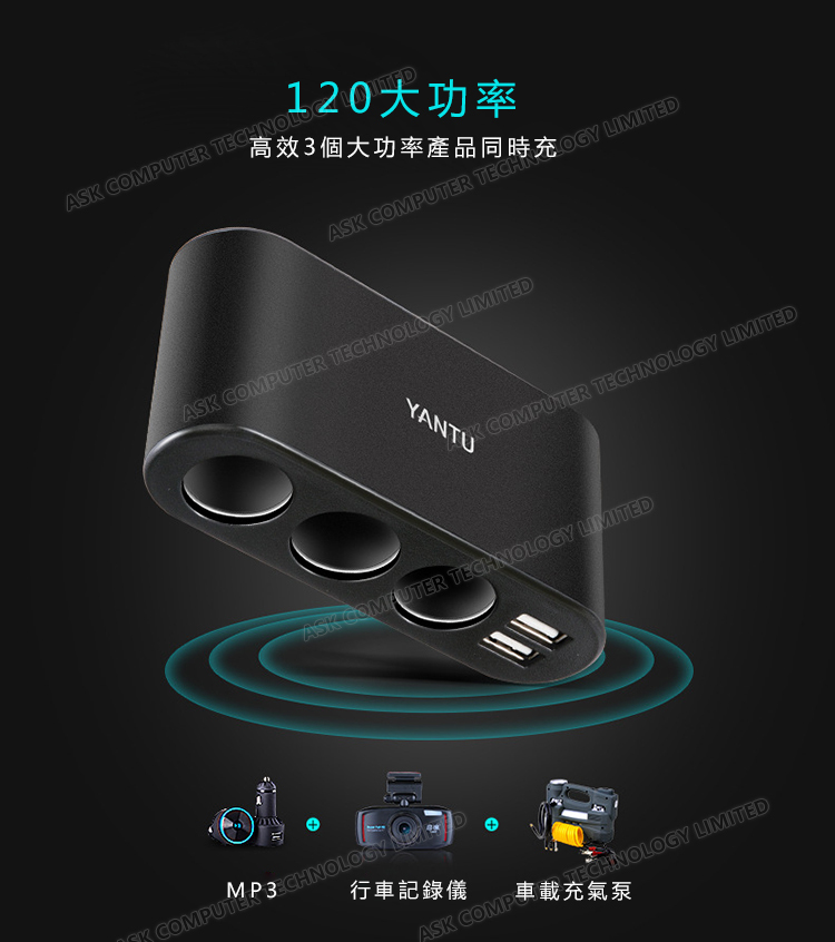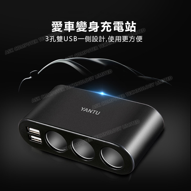 韓國JK YANTU車載點煙器車充 一拖三多功能車載充電器