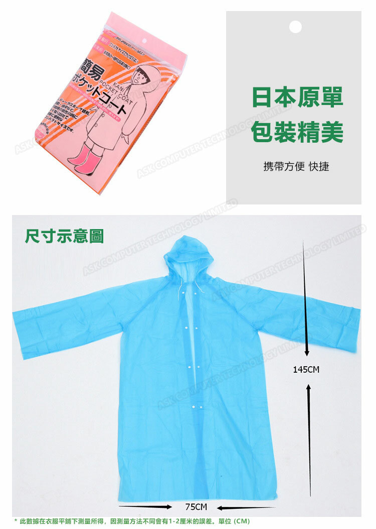 韓國JK 日式加厚戶外輕便成人一次性雨衣 J0077