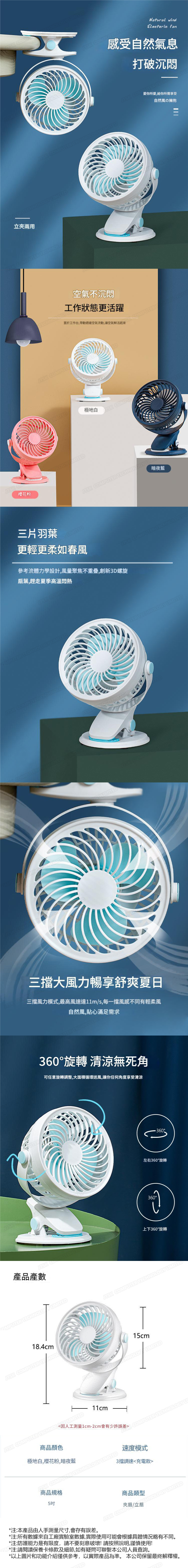 USB充電可夾式小風扇(藍色)J0015 | 可夾式小風扇 | USB充電風扇 | 迷你風扇 | 桌面風扇 | 夾子風扇