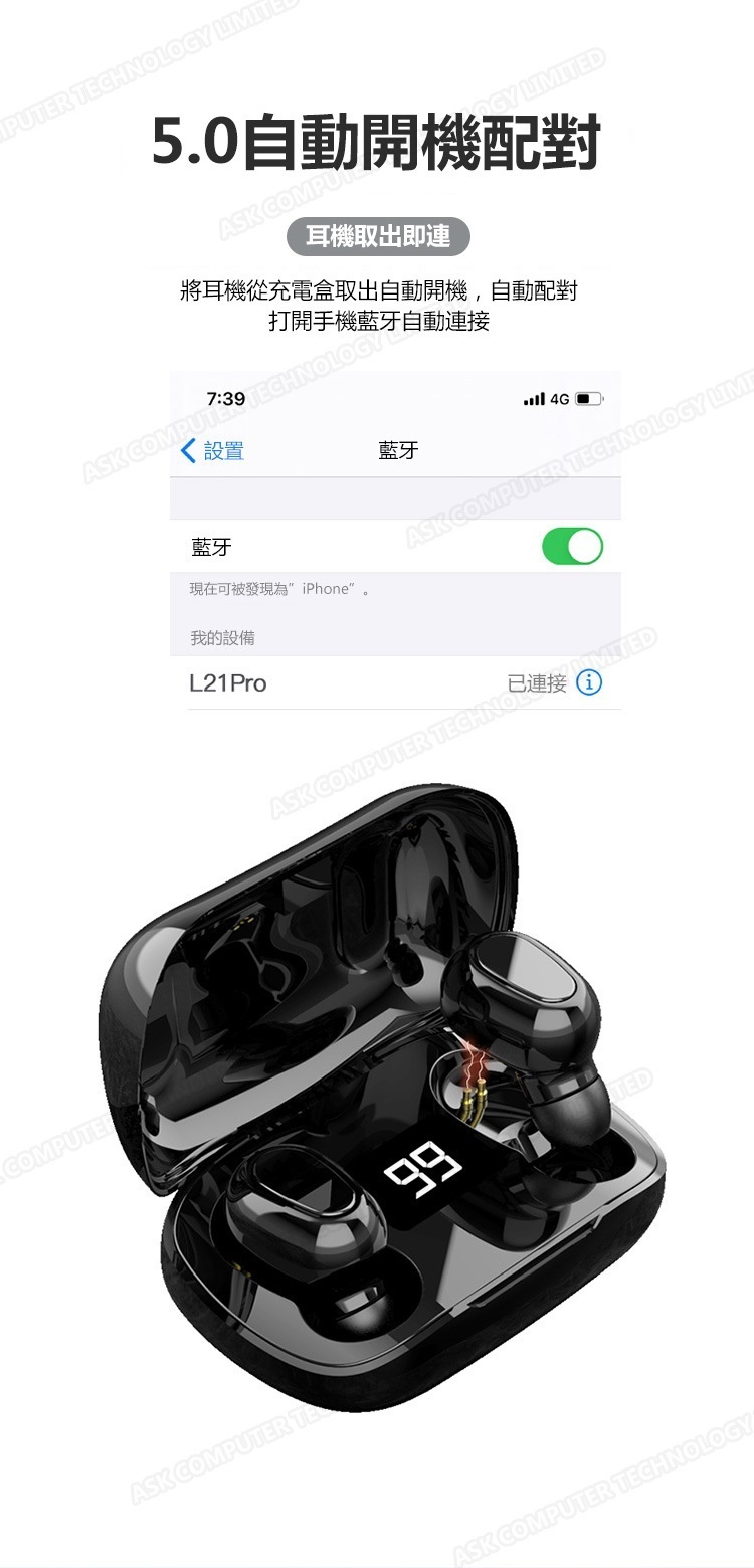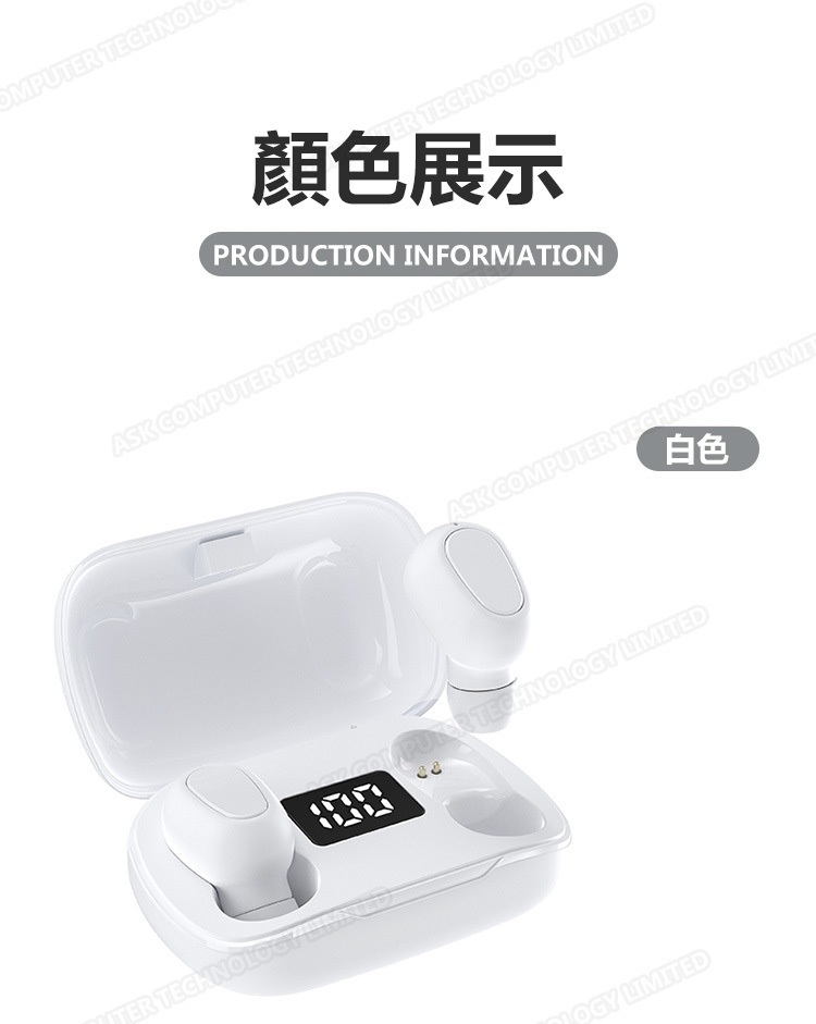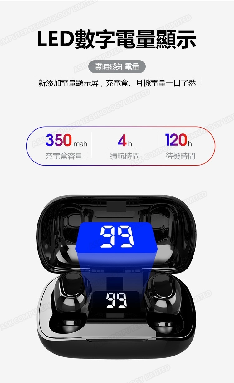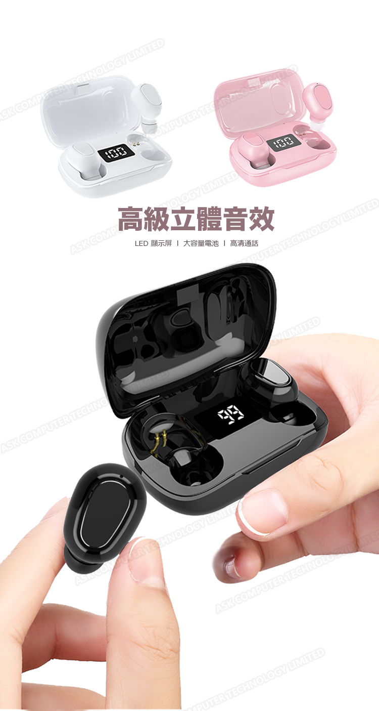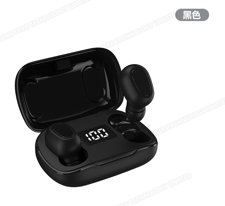 韓國B&C 數字電量顯示TWS無線藍牙耳機 立體聲降噪無線5.0運動耳機-黑色