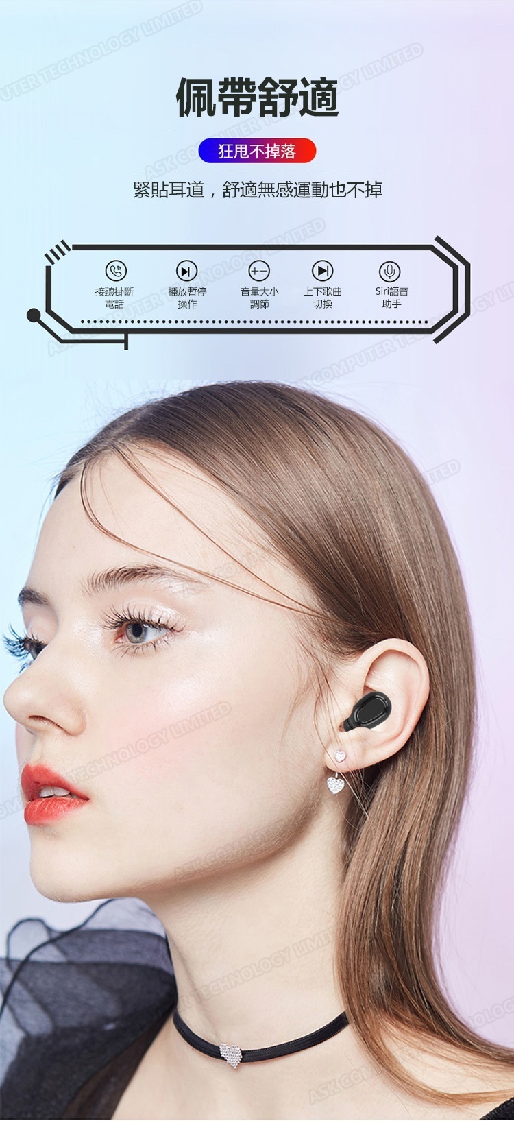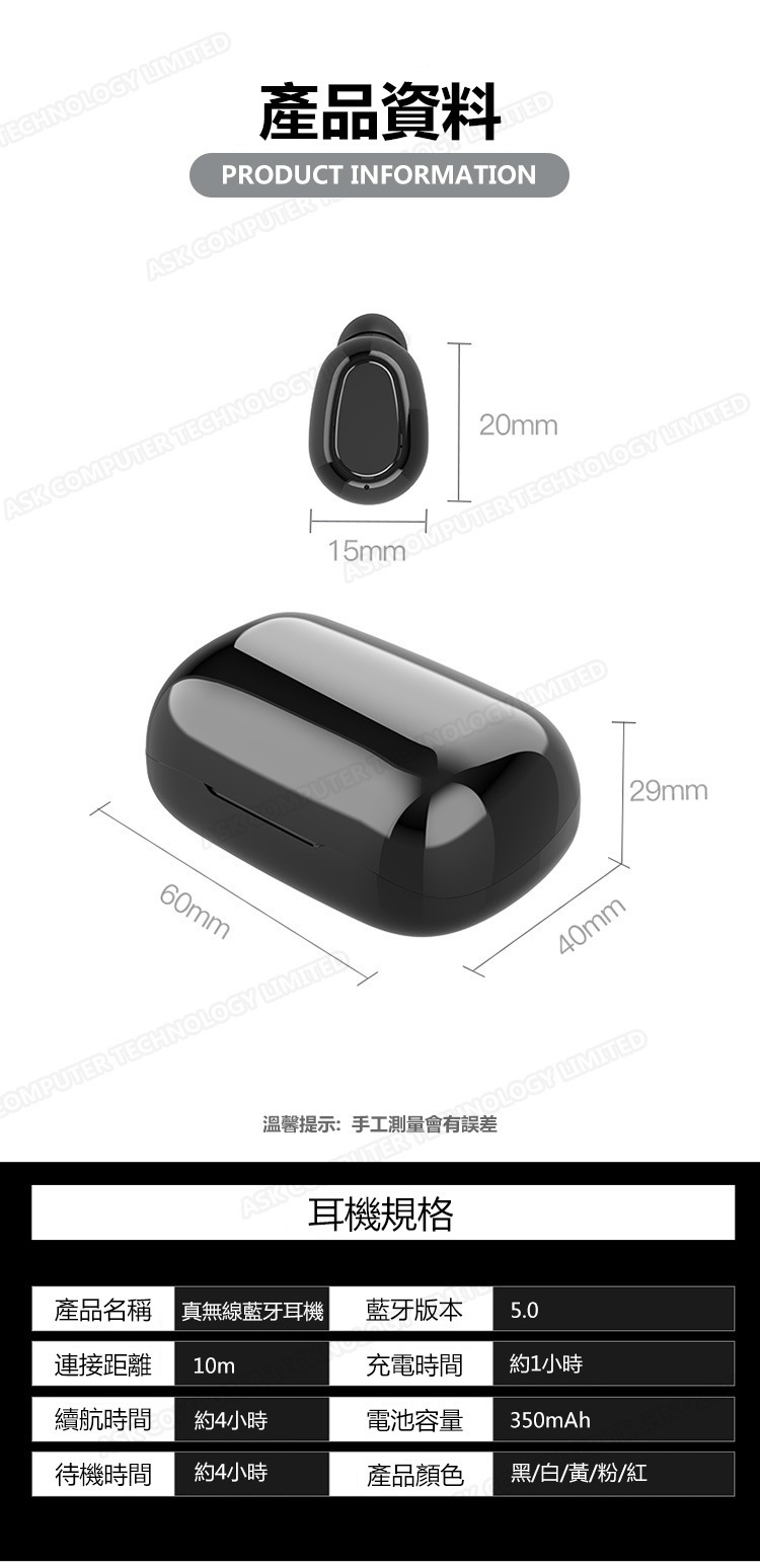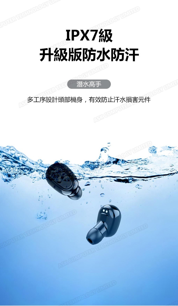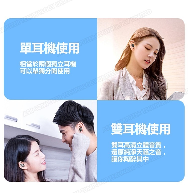 韓國B&C 數字電量顯示TWS無線藍牙耳機 立體聲降噪無線5.0運動耳機-黑色