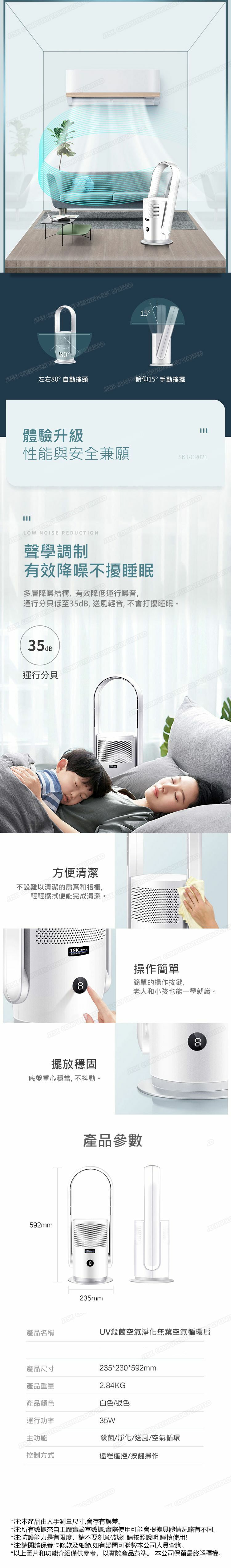 日本TSK 新款UV殺菌空氣淨化電風扇無葉空氣循環扇