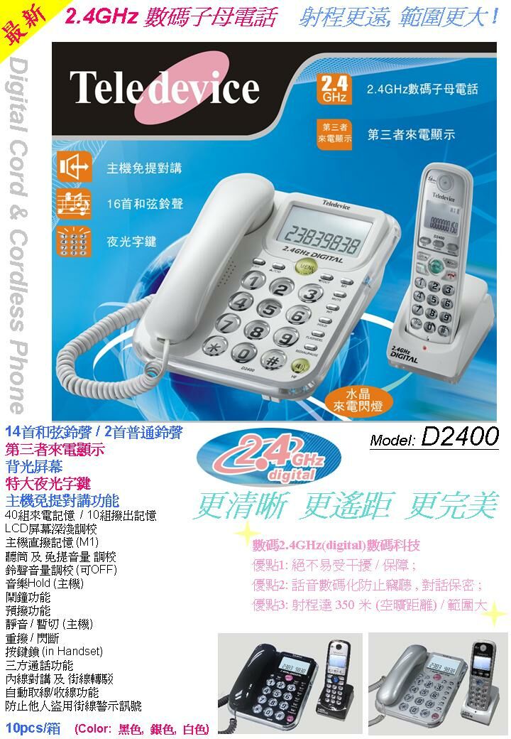Teledevice 數碼高清2.4GHz室內無線子母電話 D2400 (P3226)