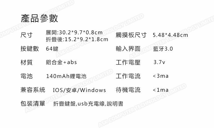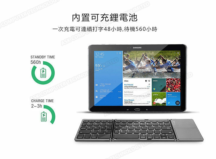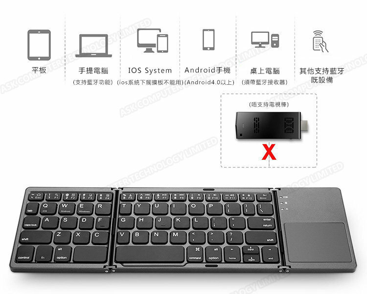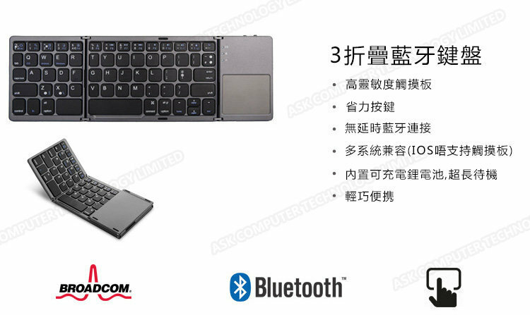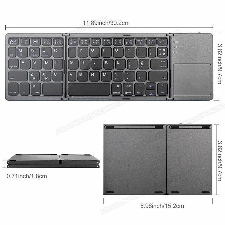 三系統通用迷你摺疊式藍牙觸控鍵盤 (P2765)