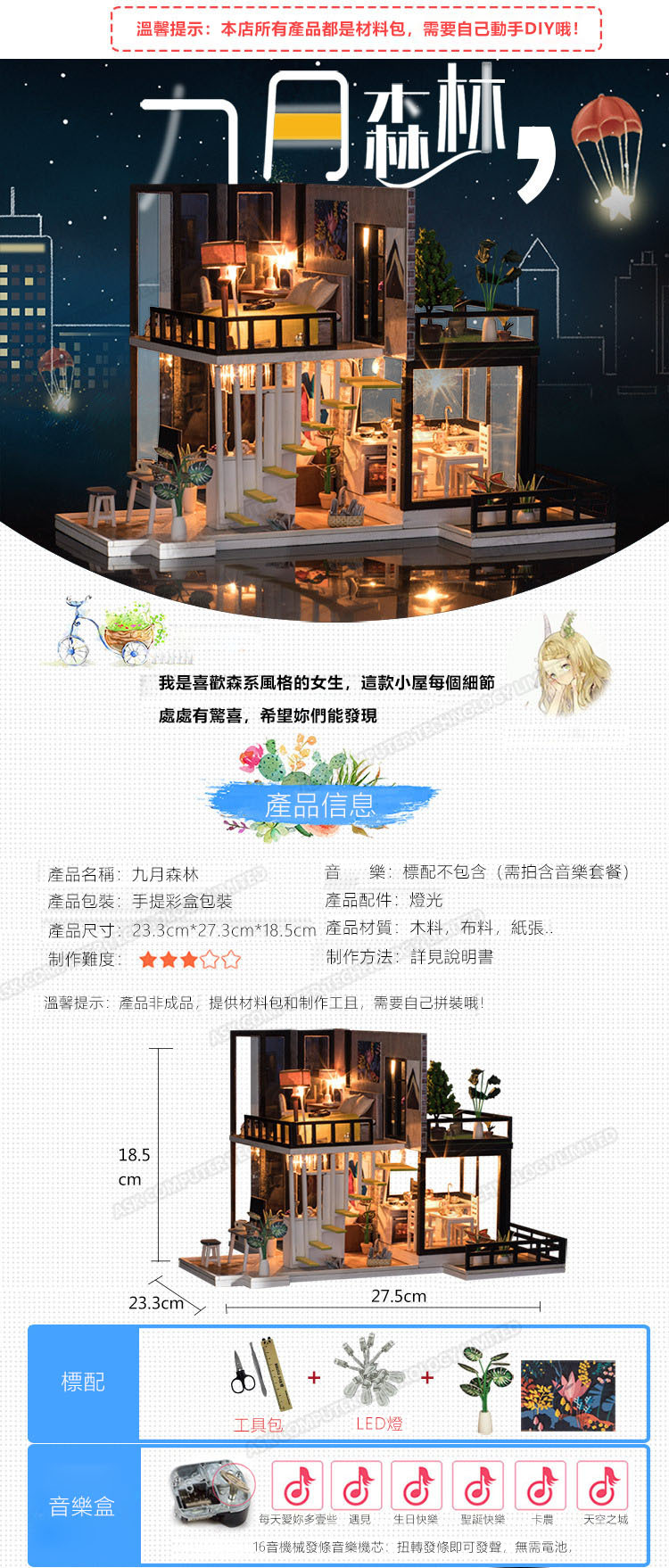TSK Japan 360° rendering cottage decorated villa music box (requires hand-made puzzle A-1) (P2571)
