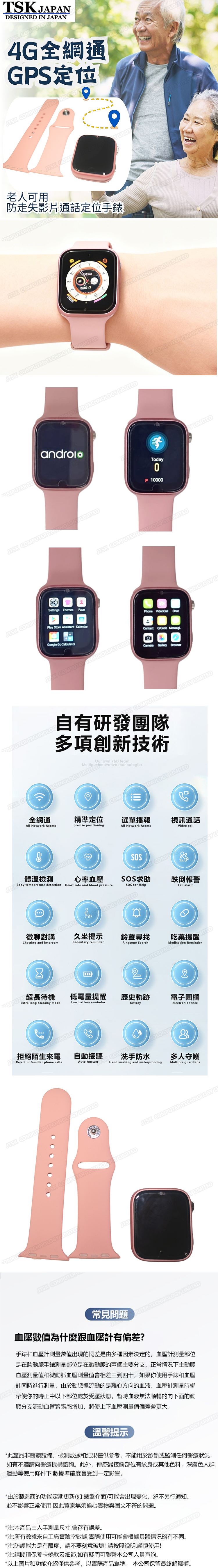 日本TSK 4G全網通GPS定位手環老人可用GPS定位手錶防走失影片通話定位手錶 P3909