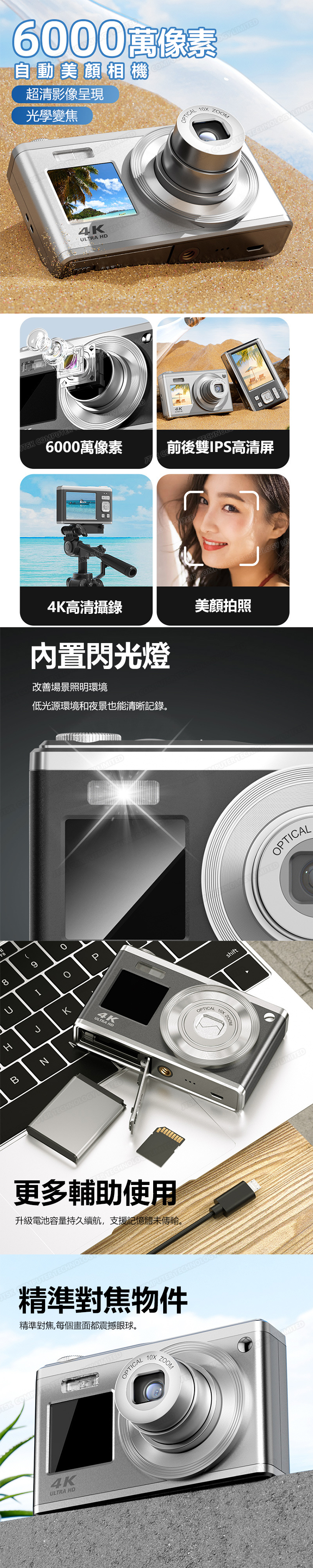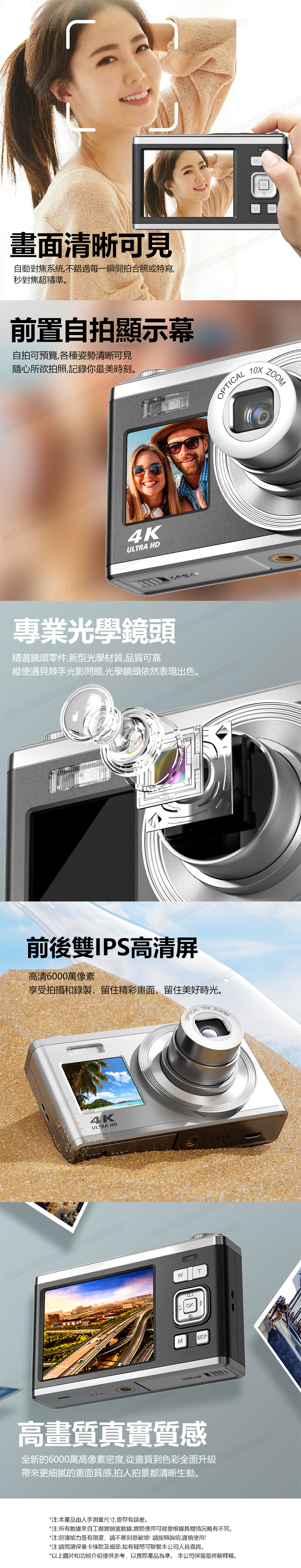 TSK JAPAN 4K超清光學變焦前後雙高清屏數碼相機