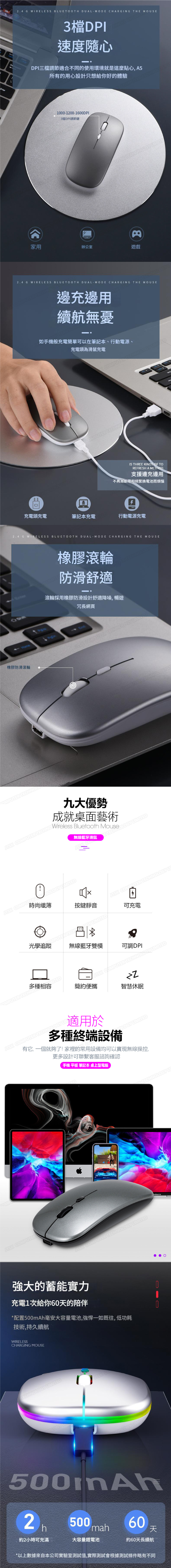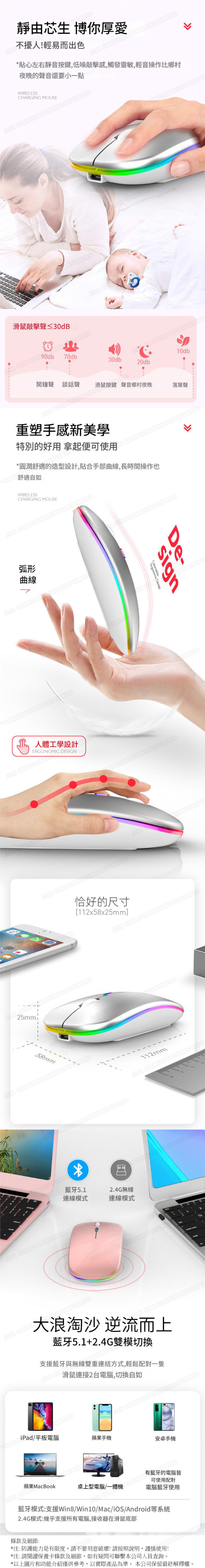 日本TSK 藍牙雙模無線滑鼠 可充電發光靜音無線滑鼠 無線鼠標 P1469
