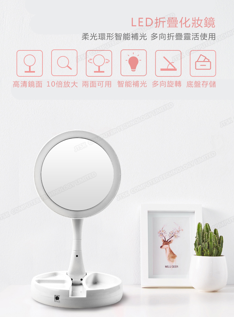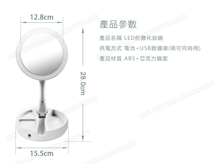 日本TSK 創意折疊式雙面LED化妝鏡 (P2436)