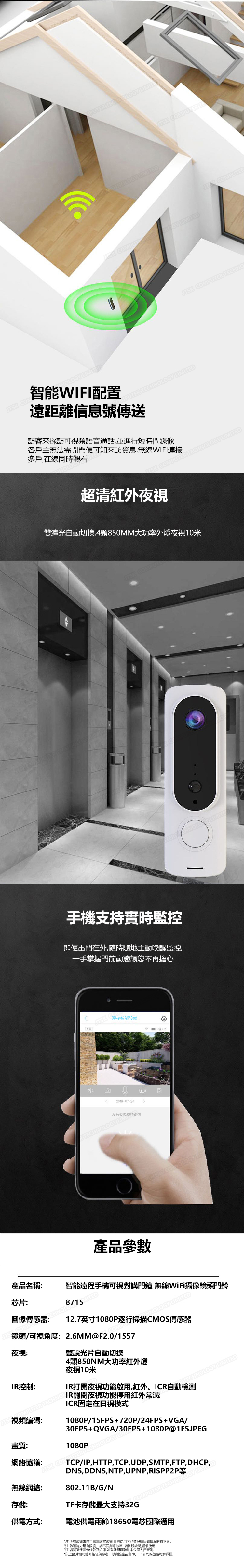 日本TSK H2智能遠程手機可視對講門鐘 無線WiFi攝像鏡頭門鈴 (P3527)
