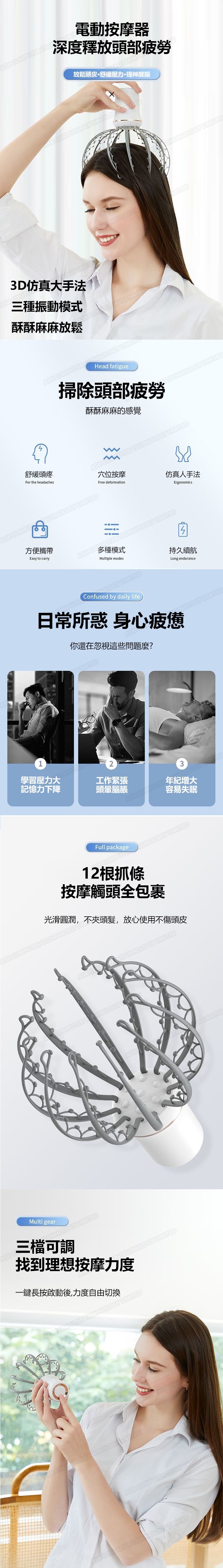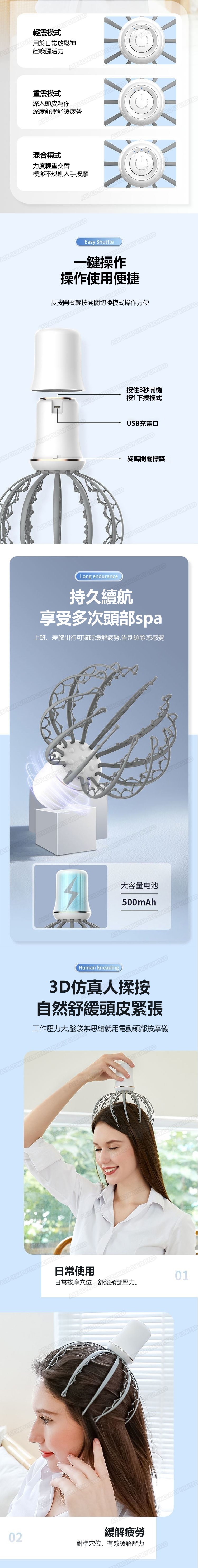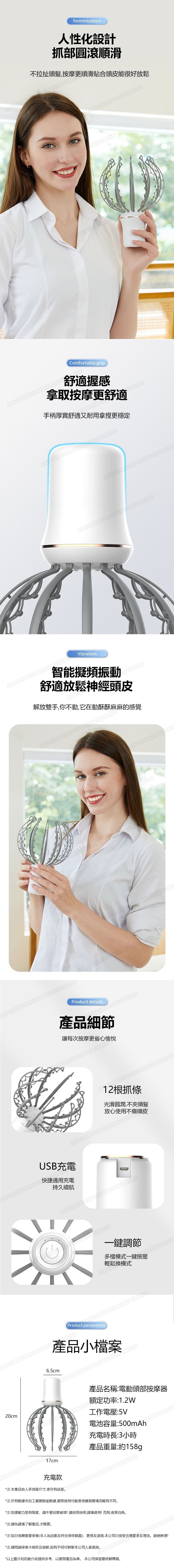 日本TSK 頭部按摩儀 仿真人手法 USB充電撓頭皮解壓按摩神器 (P3663)
