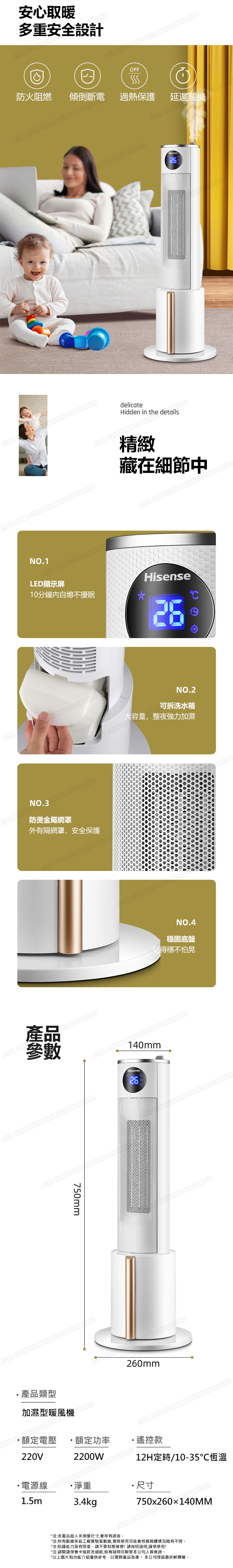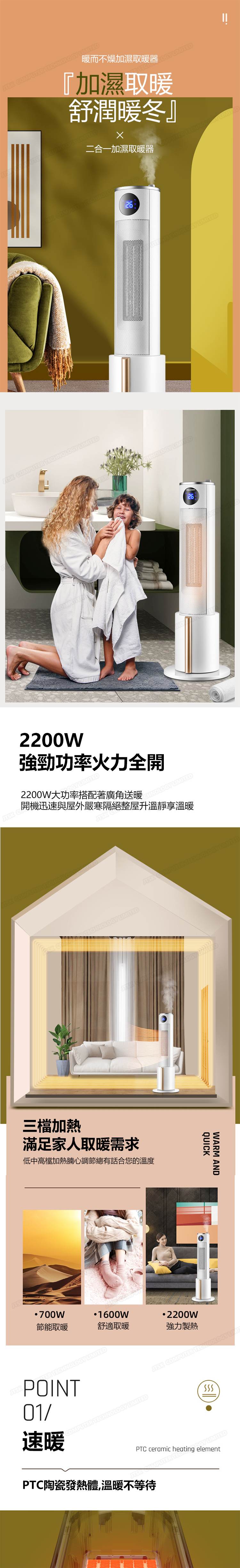 TSK JAPAN 取暖器家用電暖風機立式速熱加濕電暖氣