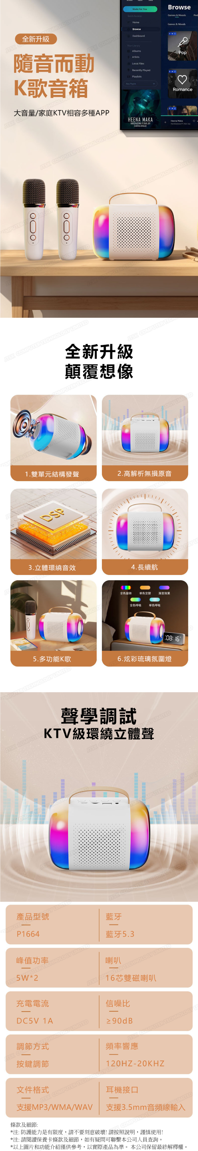 日本TSK 多功能兼容APP藍牙無線咪音響一體式K歌組合唱K神器 P1664