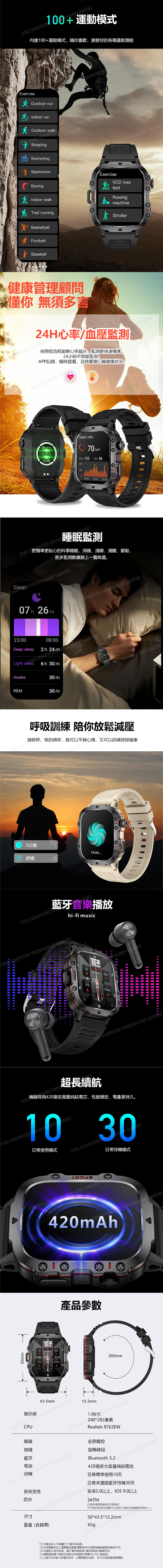 日本TSK 智能防水游泳心率血氧健康監測藍牙電話運動手錶 (P3943)