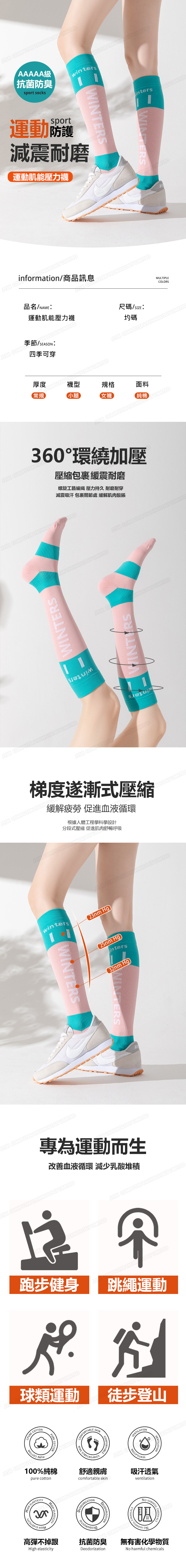 日本TSK 運動肌能壓力襪女專業健身跑步跳繩壓力瘦腿小腿襪子四季薄款長筒 (P3935)